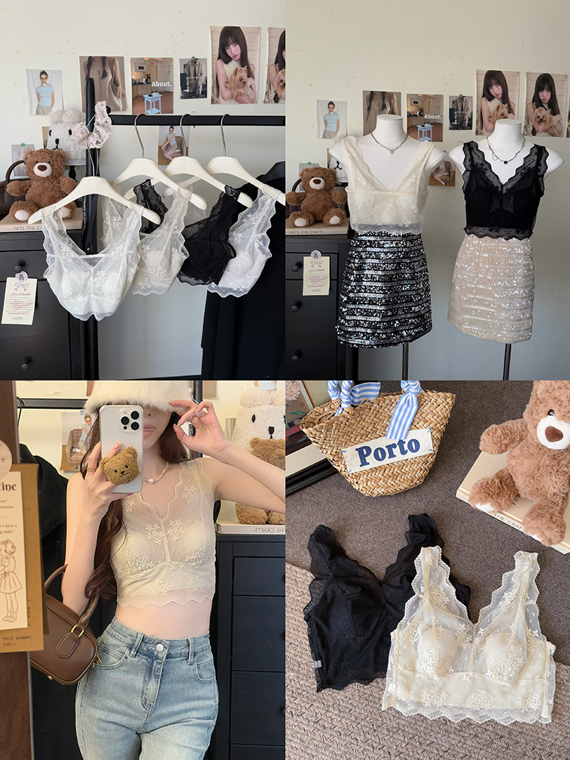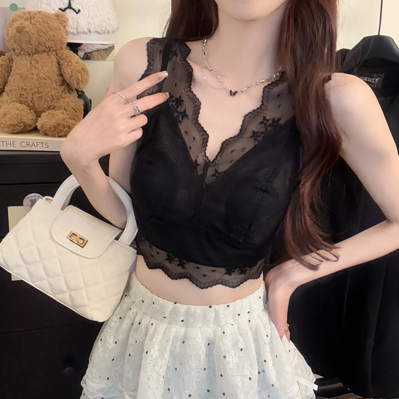 大码法式蕾丝美背叠穿神器兔耳朵杯垫免文胸内衣打底吊带背心