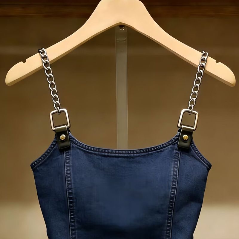 BY17202# 链条牛仔吊带显瘦小个子短款背心新款上衣外穿无袖气质小众打底衫