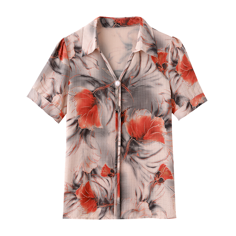 Home > 短袖雪纺衫、衬衫、上衣 > BY17360# 新款夏季印花衬衫女宽松遮肚上衣减龄小衫