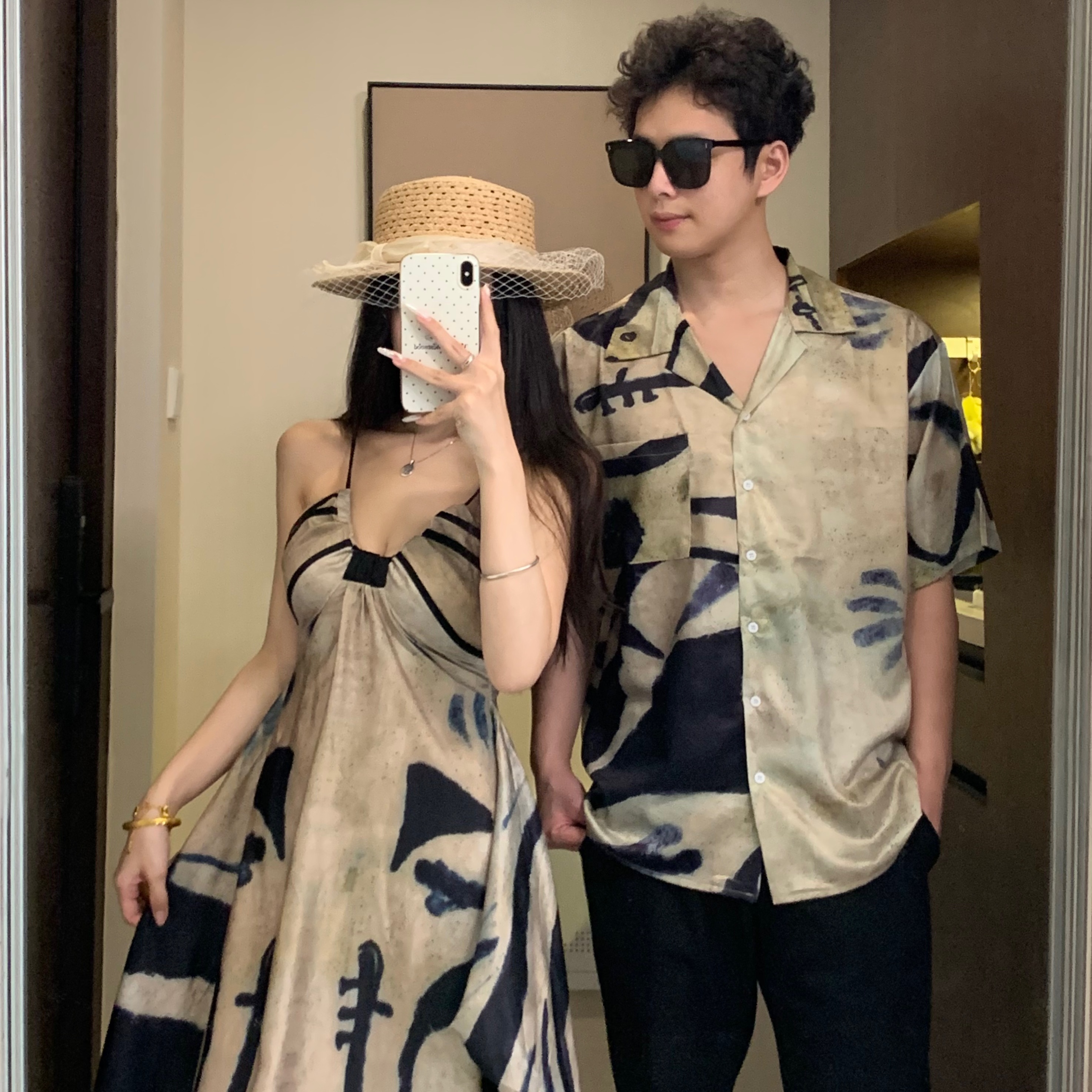 BY19042# 情侣装夏季吊带裙海边度假风沙滩裙一裙一衣 服裝批發女裝批發服飾貨源