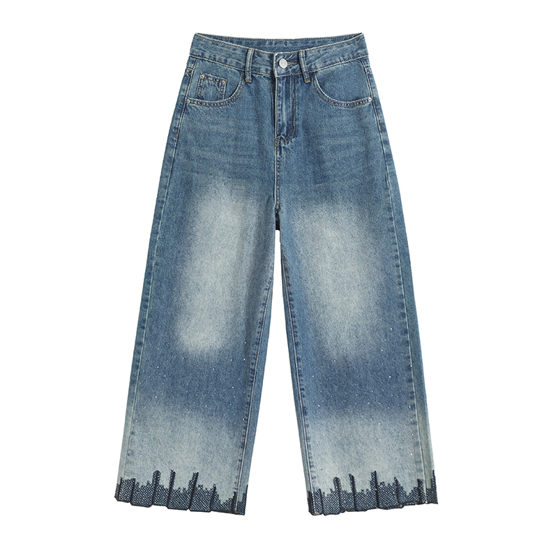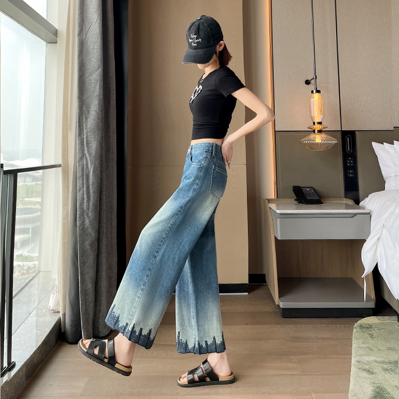 BY19144# 烫钻刺绣八分阔腿牛仔裤女夏季新款高腰宽松显瘦百搭直筒裤子 服裝批發女裝批發服飾貨源