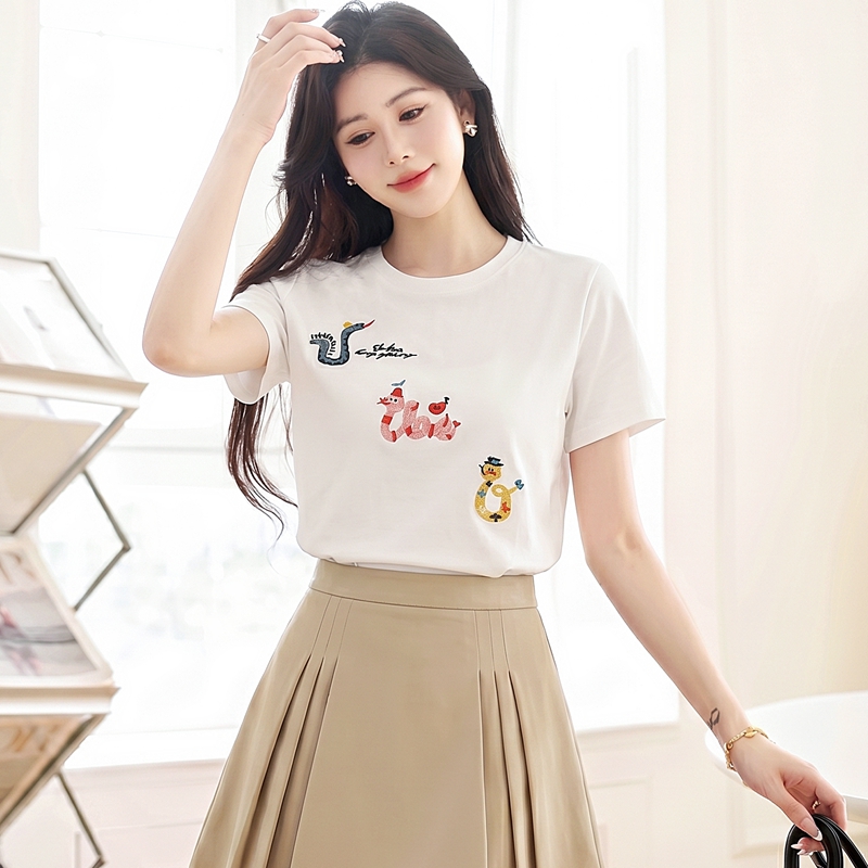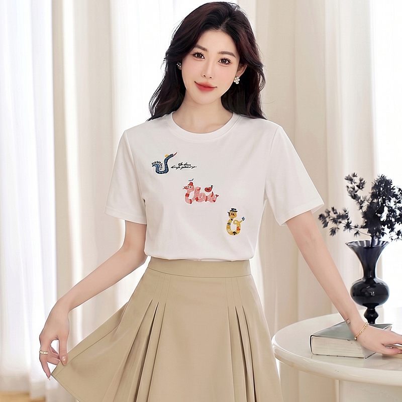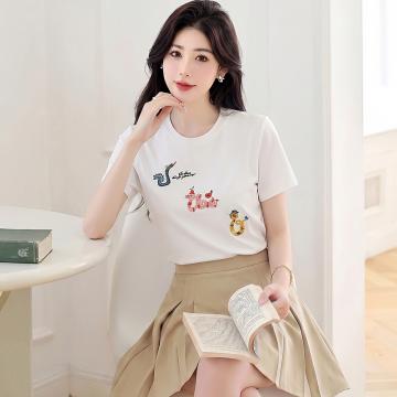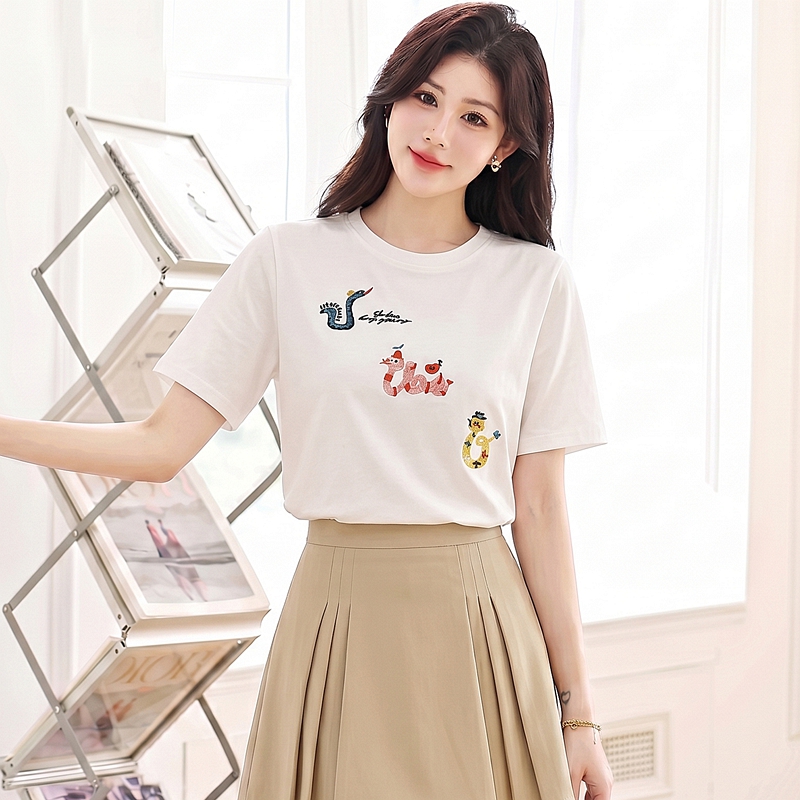 BY19169# 白色蛇年纯棉短袖t恤女新款夏季宽松休闲百搭显瘦正肩上衣ins 服裝批發女裝批發服飾貨源