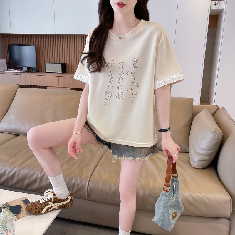 BY19184# 纯棉短袖t恤女夏季新款圆领印花大码女装休闲显瘦上衣 服裝批發女裝批發服飾貨源