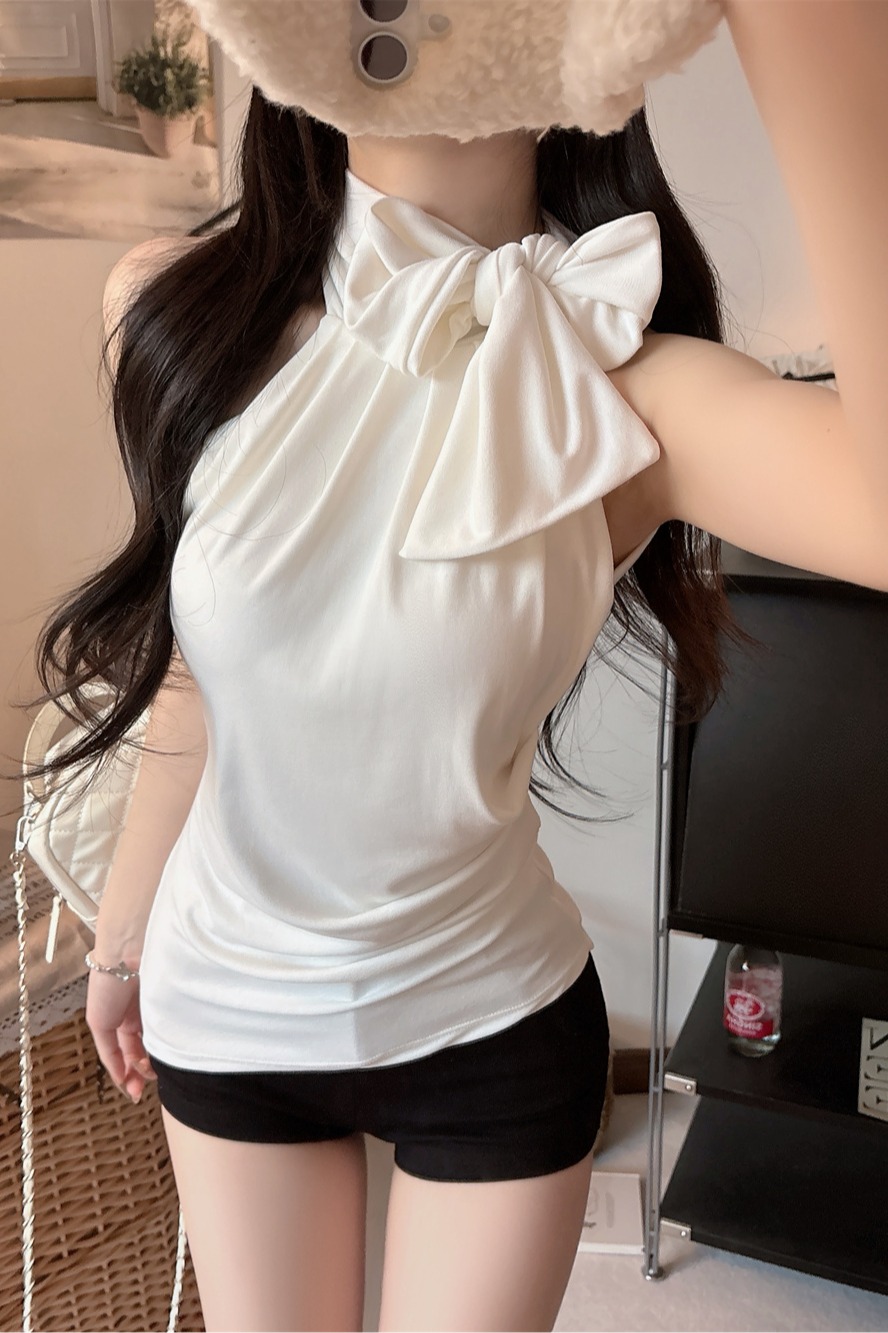 BY19198# 非不减蝴蝶结修身挂脖无袖背心女夏季小众辣妹显瘦上衣外穿 服裝批發女裝批發服飾貨源