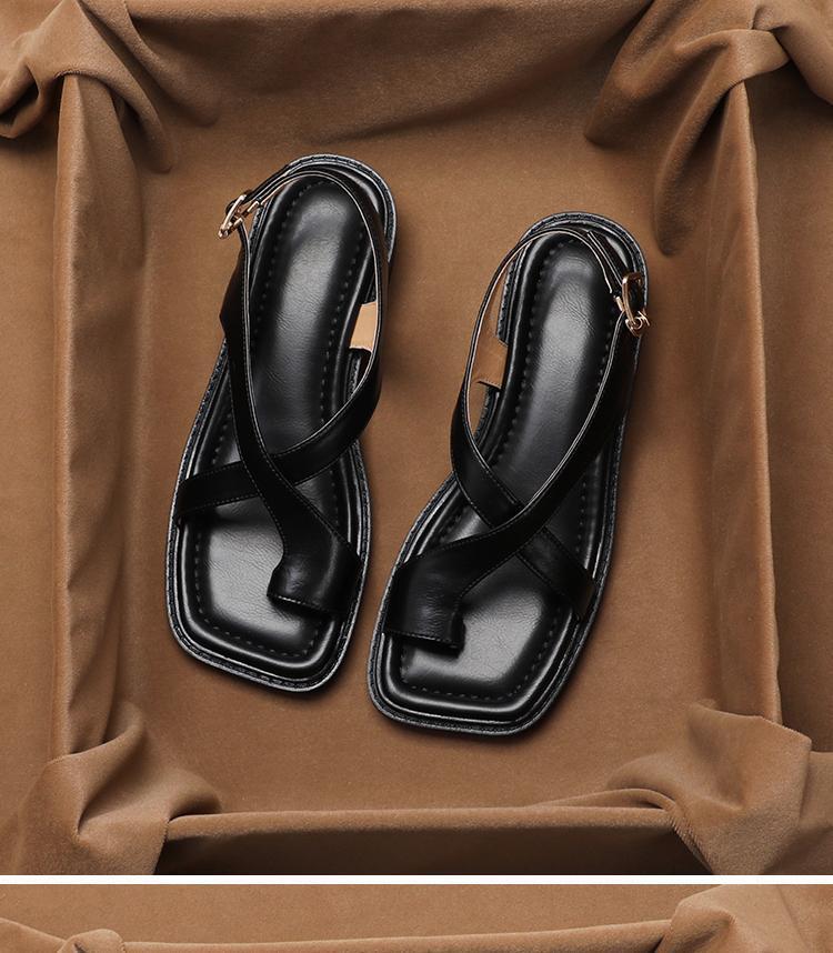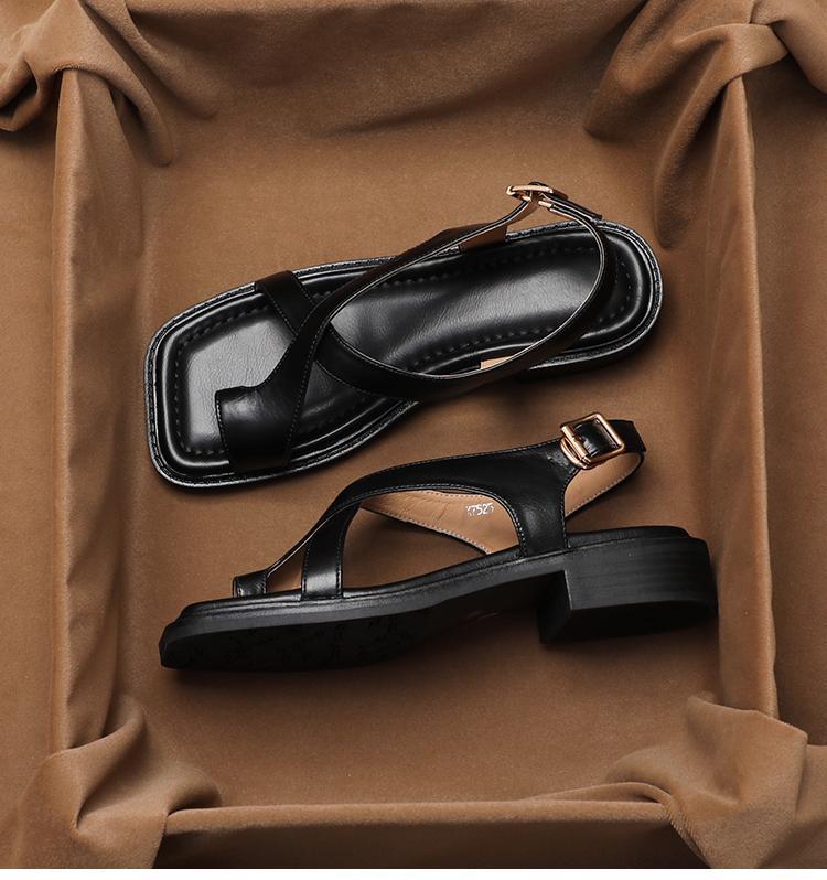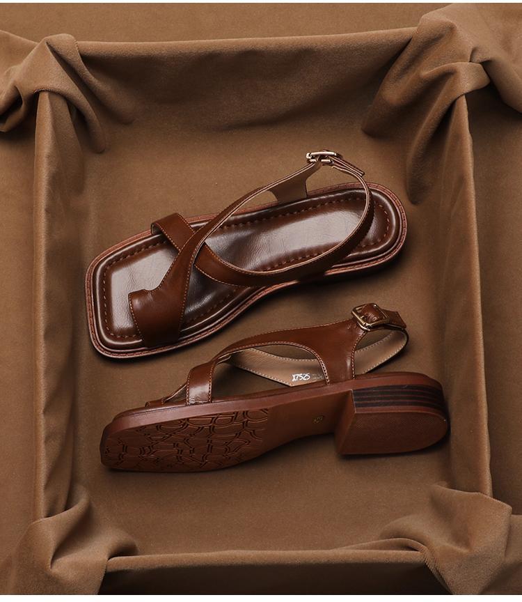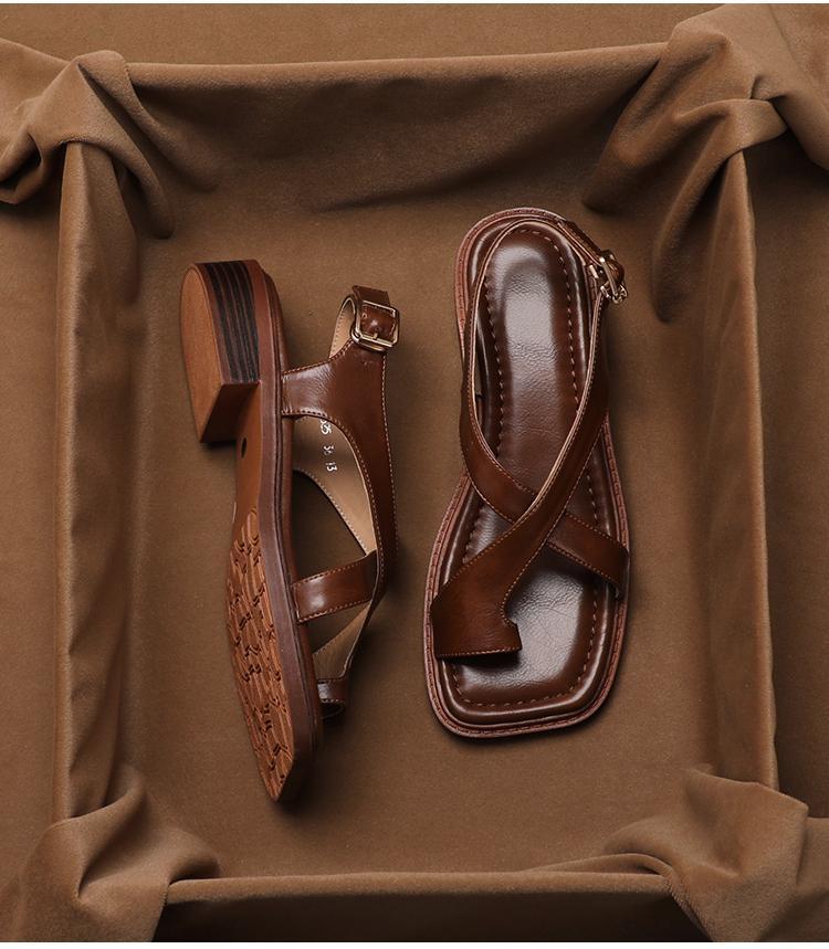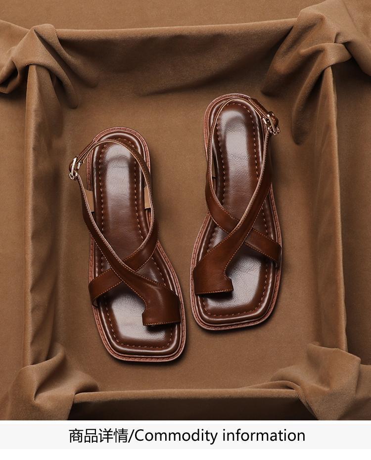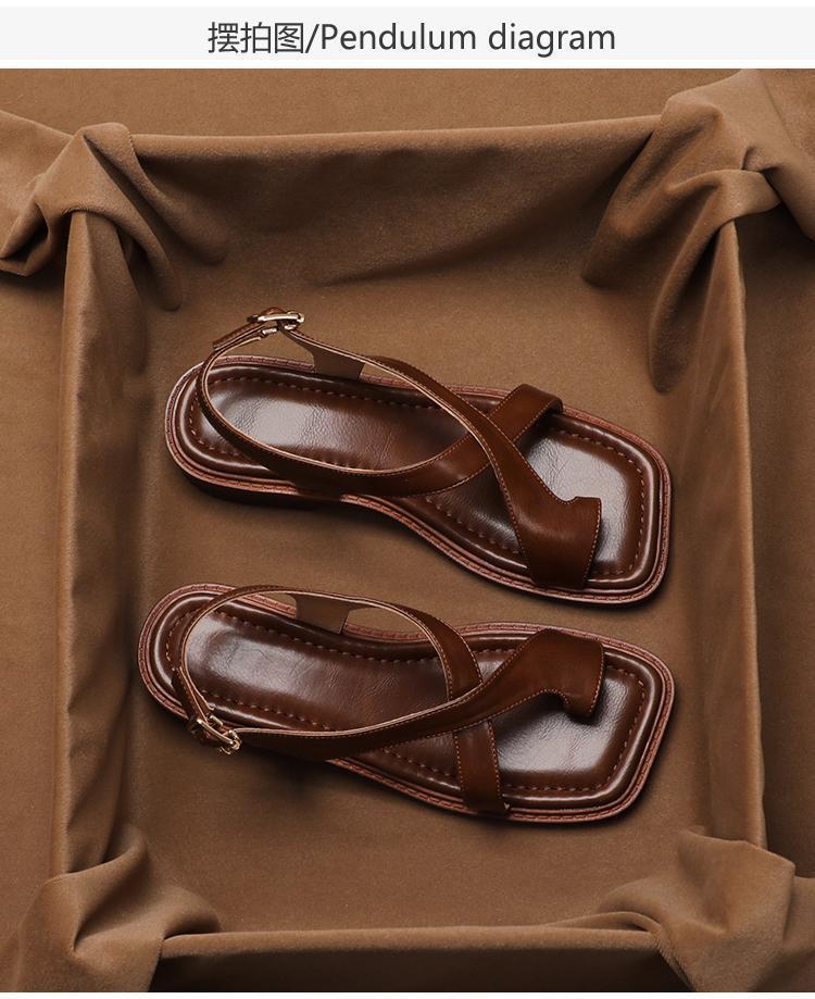 X-32750# 法式复古棕色套趾凉鞋女夏夏季新款时尚大码低跟罗马女凉鞋