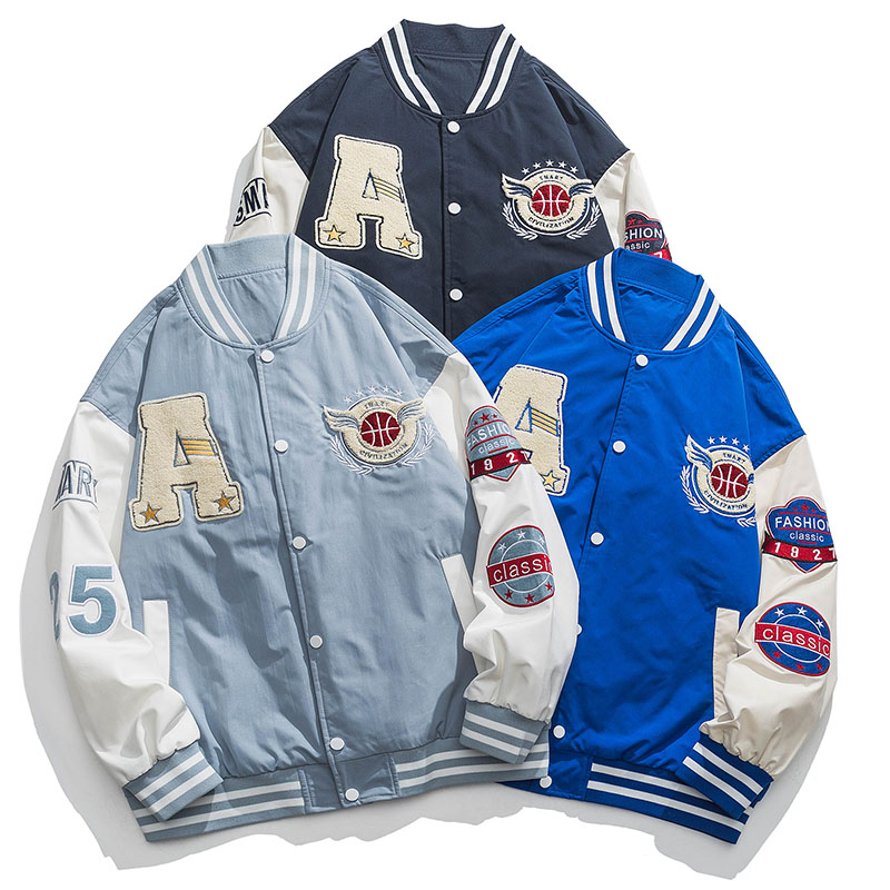 FA42355# 美式潮流跨境棒球服机能风外套男春秋季刺绣夹克男潮牌情侣装 男装批发
