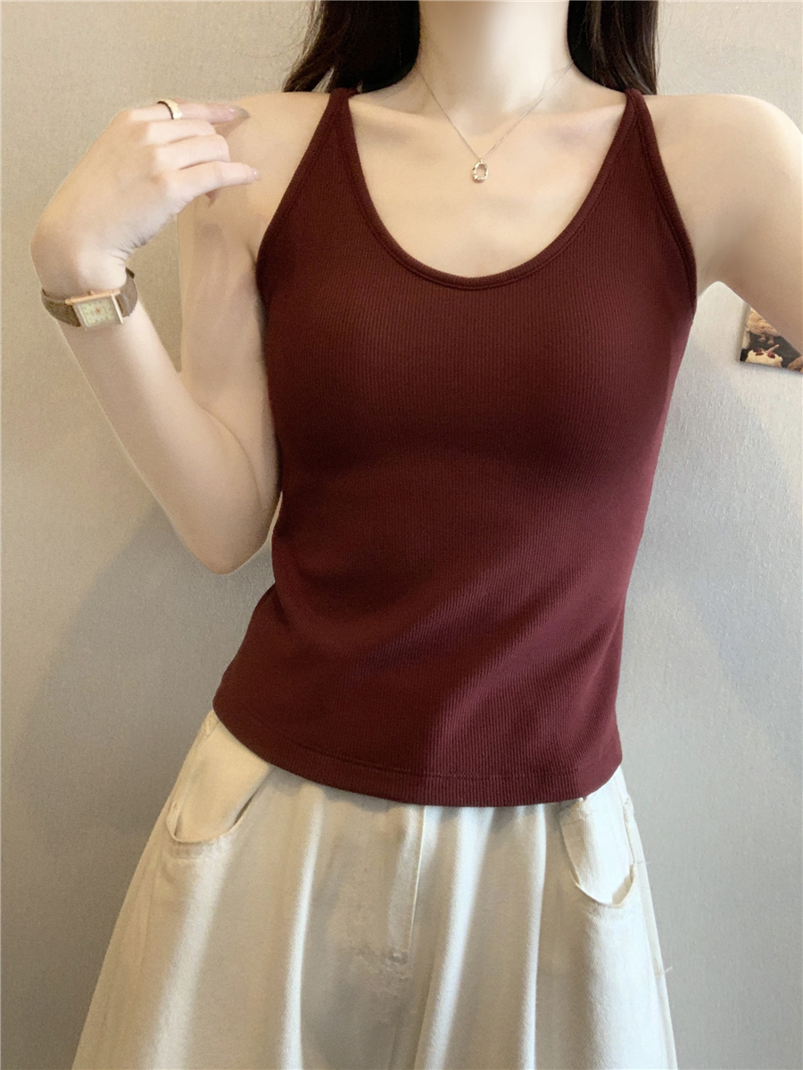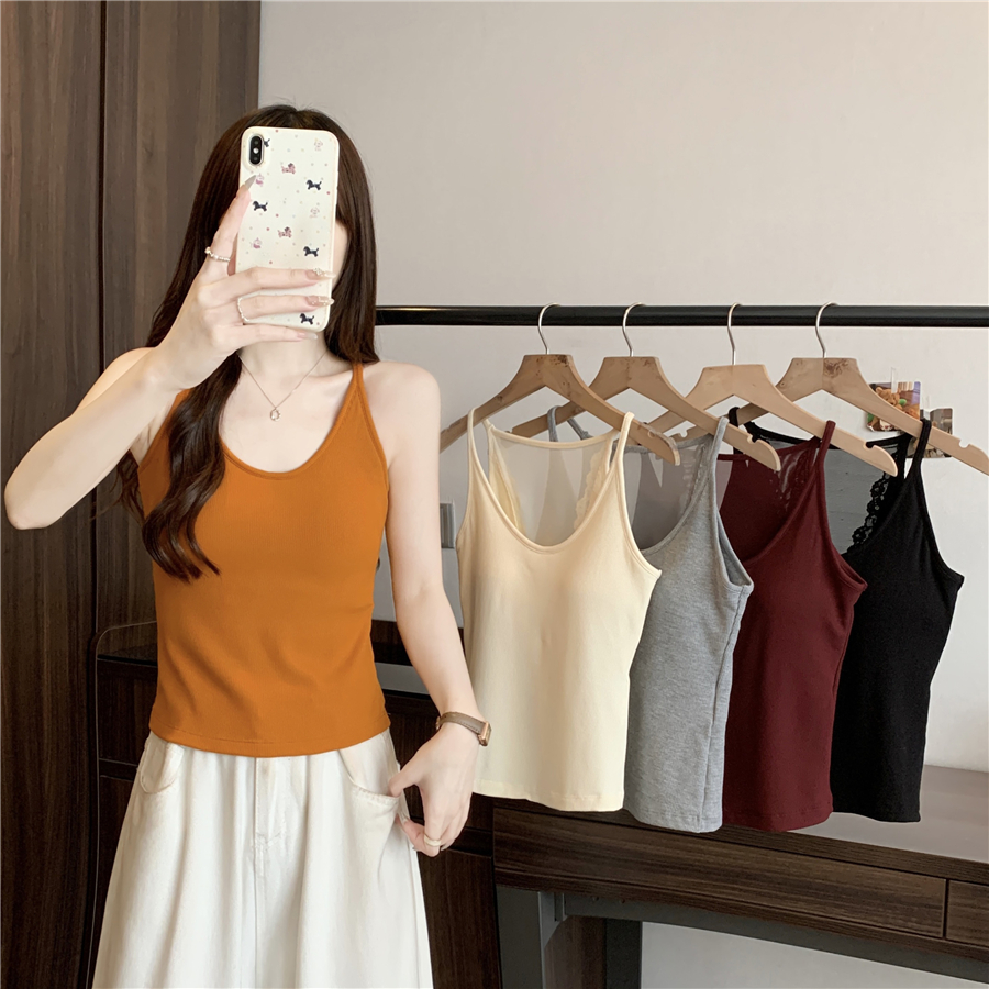 FA43138# 秋冬新款磨毛吊带背心女带胸垫免穿内衣内搭打底上衣 服裝批發女裝批發服飾貨源