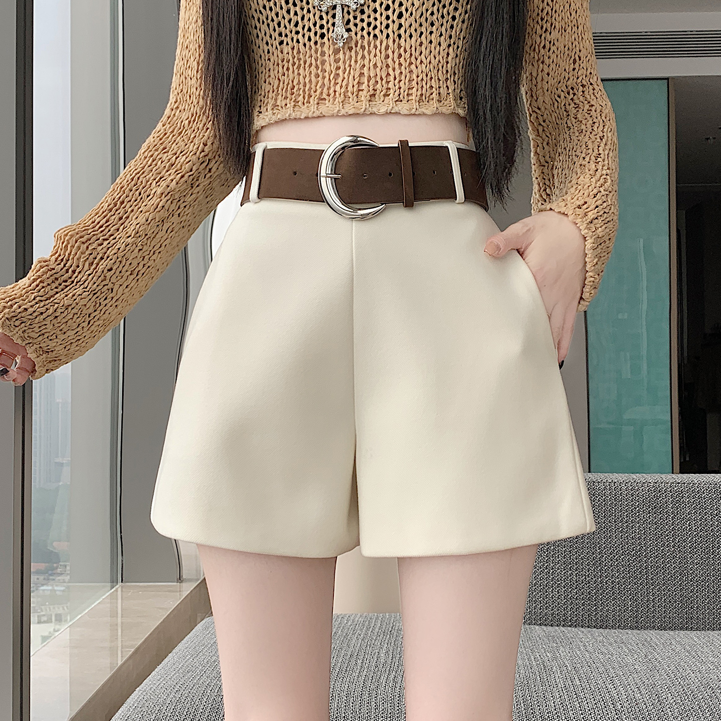 FA43181# 冬季气质毛呢短裤女裤高腰宽松显瘦a字靴裤小个子外穿呢子阔腿裤 服裝批發女裝批發服飾貨源