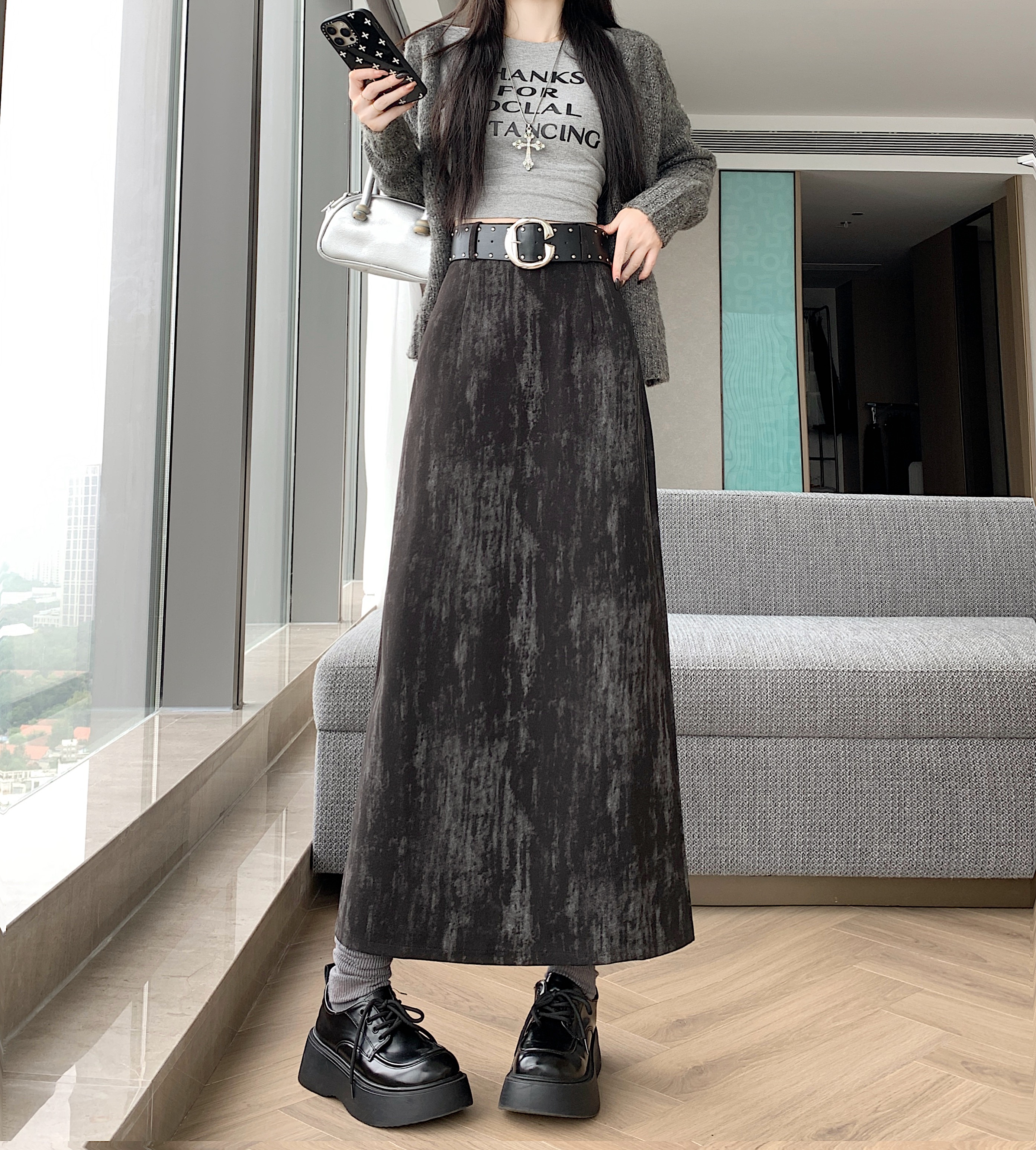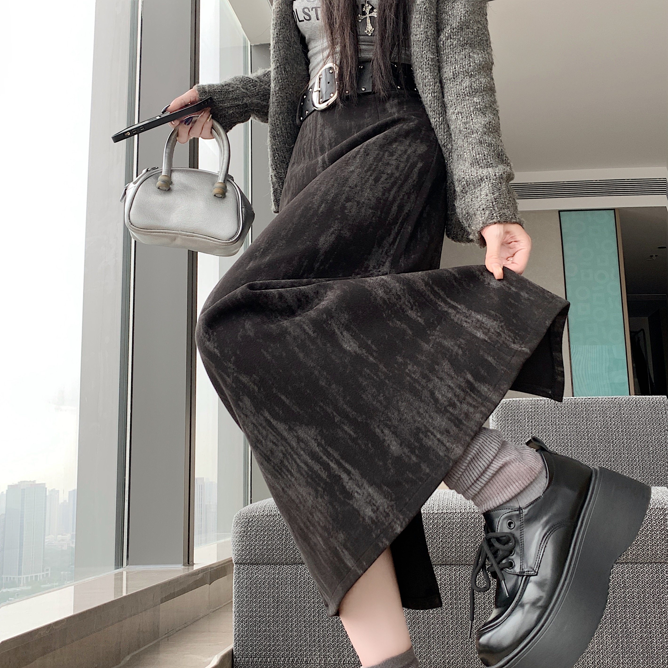 FA43182# 扎染丝绒半身裙女秋冬新款中长款高腰气质显瘦包臀a字裙 服裝批發女裝批發服飾貨源