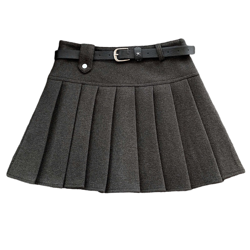 FA43186# 高腰百褶半身裙女秋冬新款灰色毛呢短裙遮胯显瘦防走光A字裙 服裝批發女裝批發服飾貨源