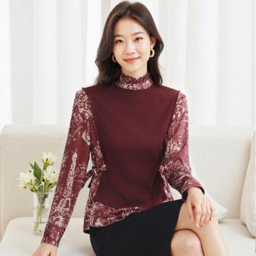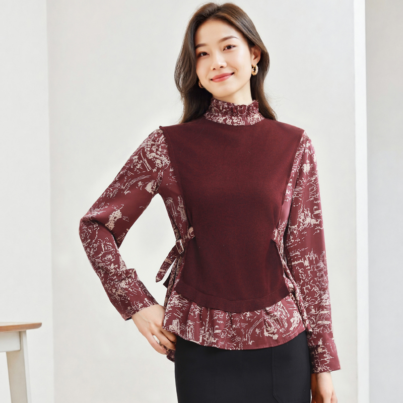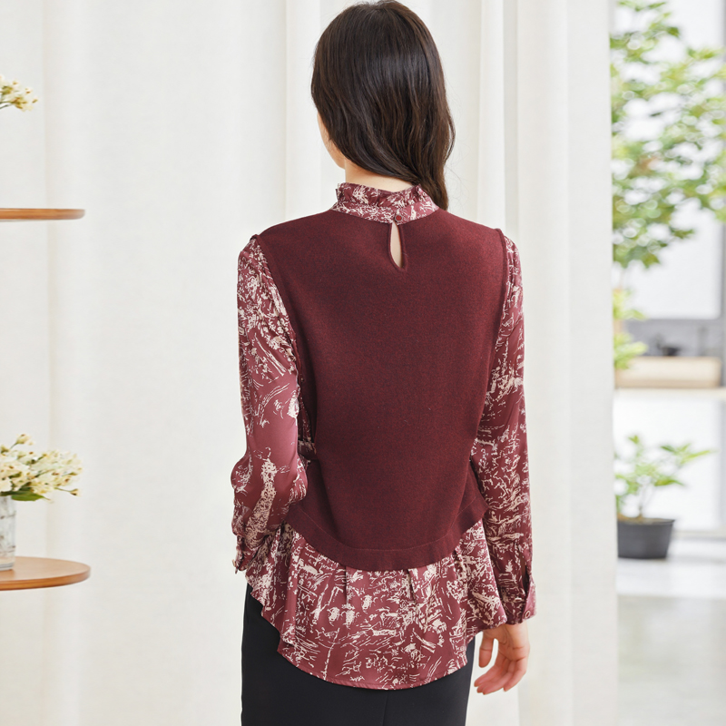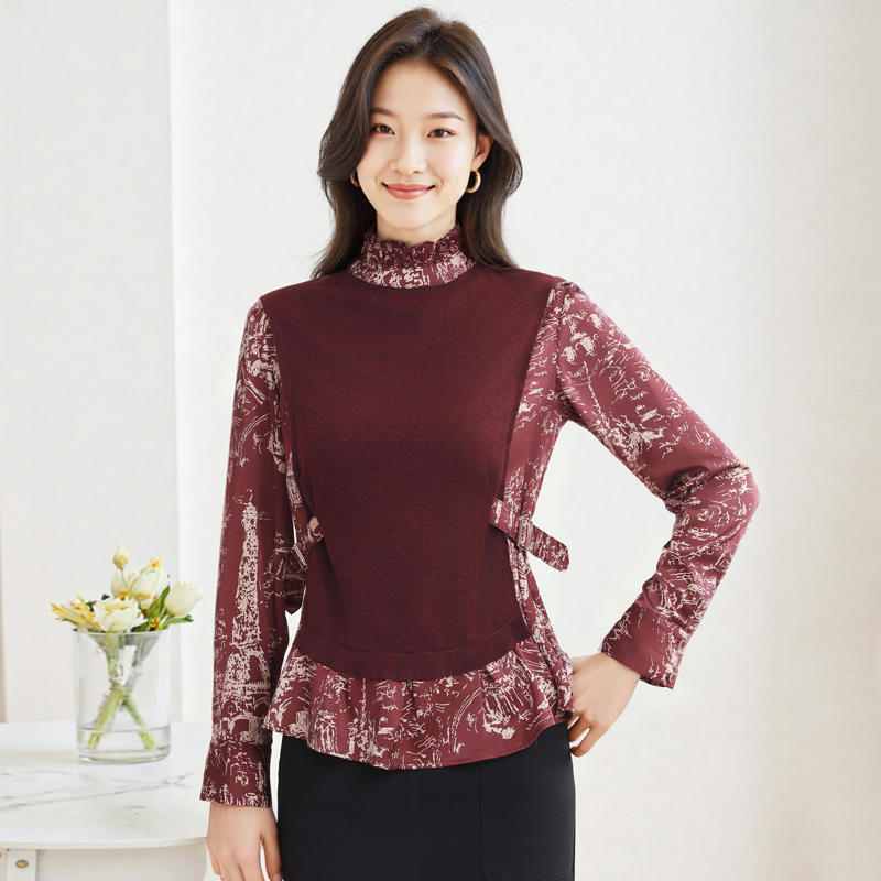 FA43296# 春装女款慵懒风新款超好看打底内搭羊毛假两件红色 服裝批發女裝批發服飾貨源