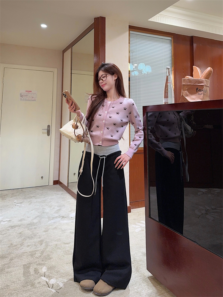 FA43526# 秋季针织开衫毛衣女休闲显瘦短款外套+直筒高腰休闲裤 服裝批發女裝批發服飾貨源