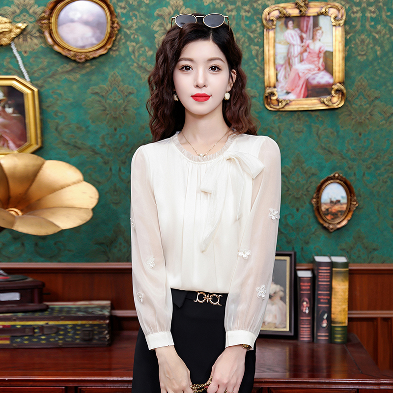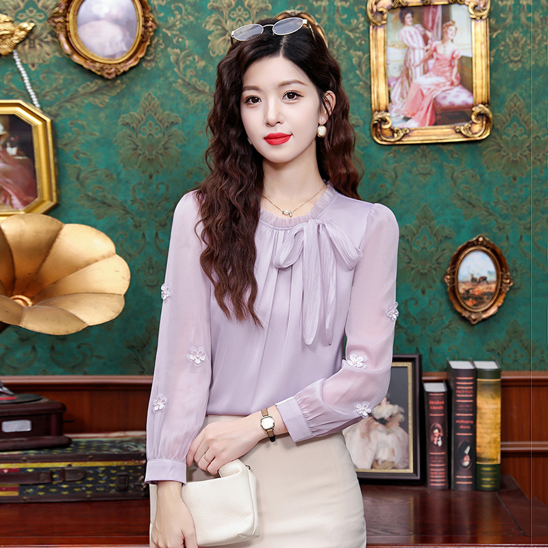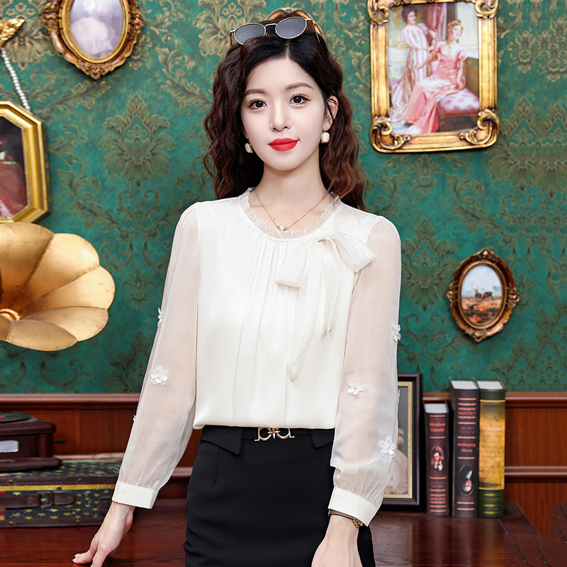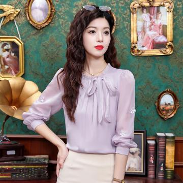 FA43703# 秋新款小立领荷叶边显瘦荷叶袖衬衫减龄法式女装上衣 服裝批發女裝批發服飾貨源