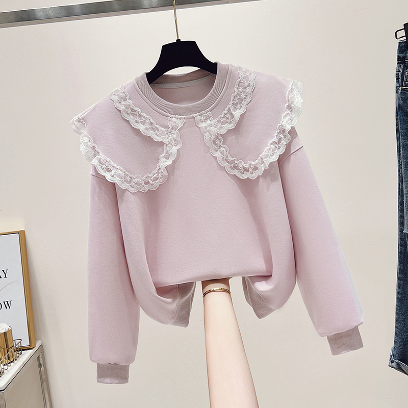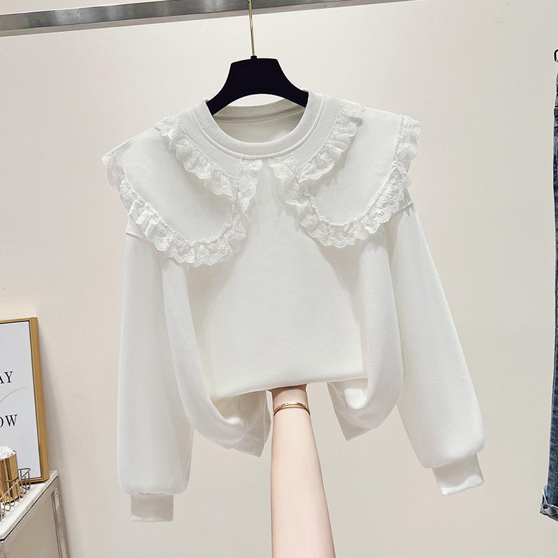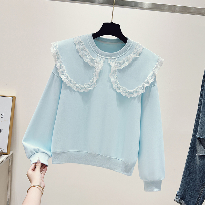 FA43706# 思洛伊早秋新款蕾丝娃娃领甜美学院风卫衣小清新简约长袖 服裝批發女裝批發服飾貨源