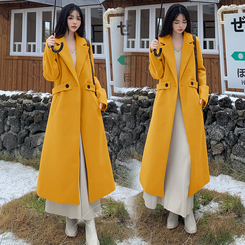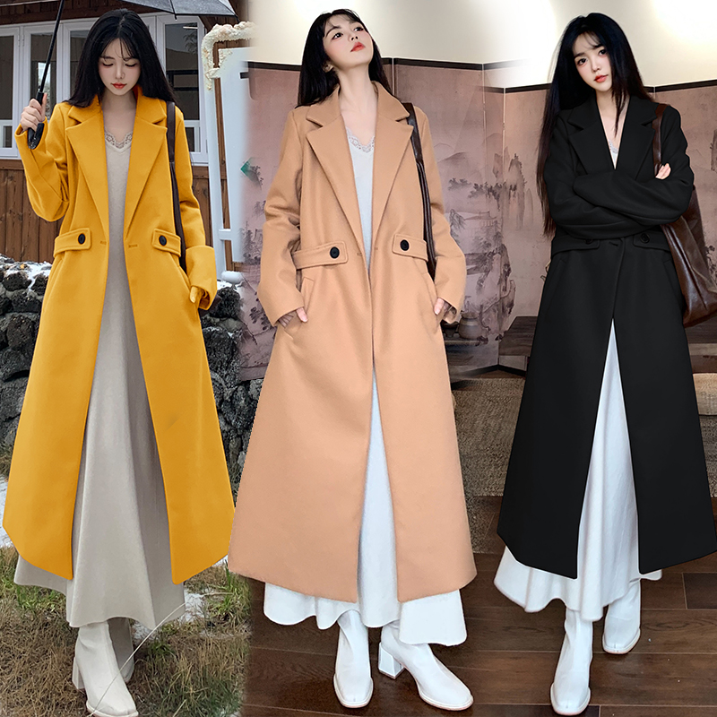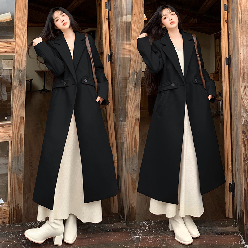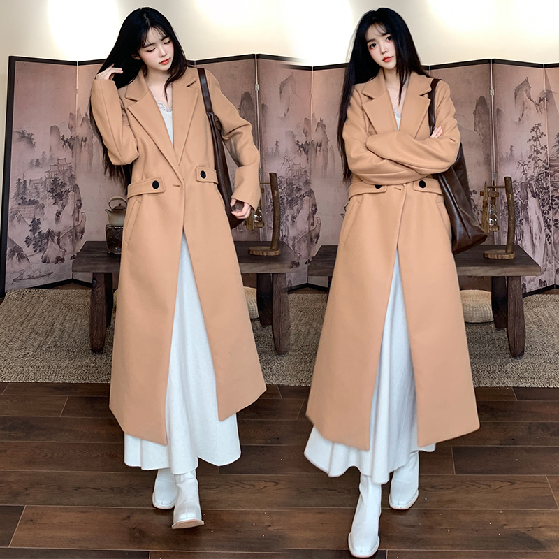 FA43710# 赫本风收腰呢子大衣外套秋冬新款修身显瘦长款西装外套 服裝批發女裝批發服飾貨源