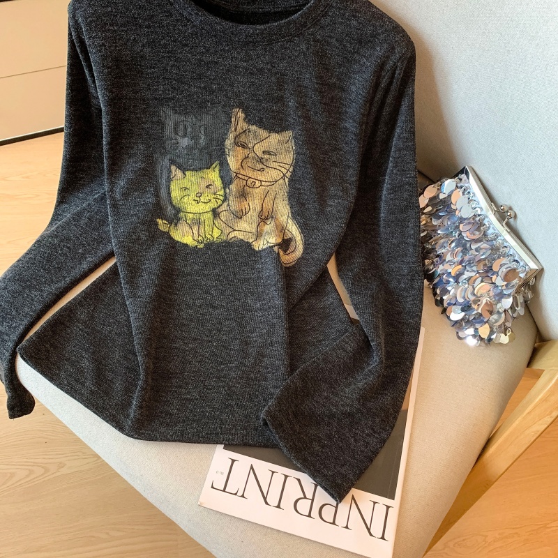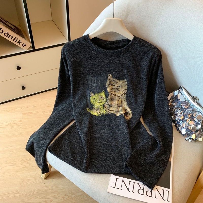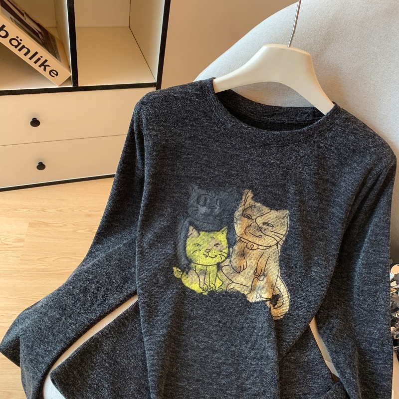 FA43716# 欧洲站卡通猫咪印花长袖T恤女秋冬新款时尚巨好看上衣 服裝批發女裝批發服飾貨源