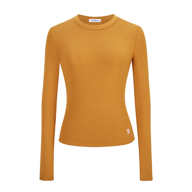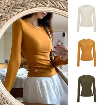 FA43940# -南瓜色刺绣字母正肩长袖t恤女新款秋季修身打底衫上衣女 服裝批發女裝批發服飾貨源