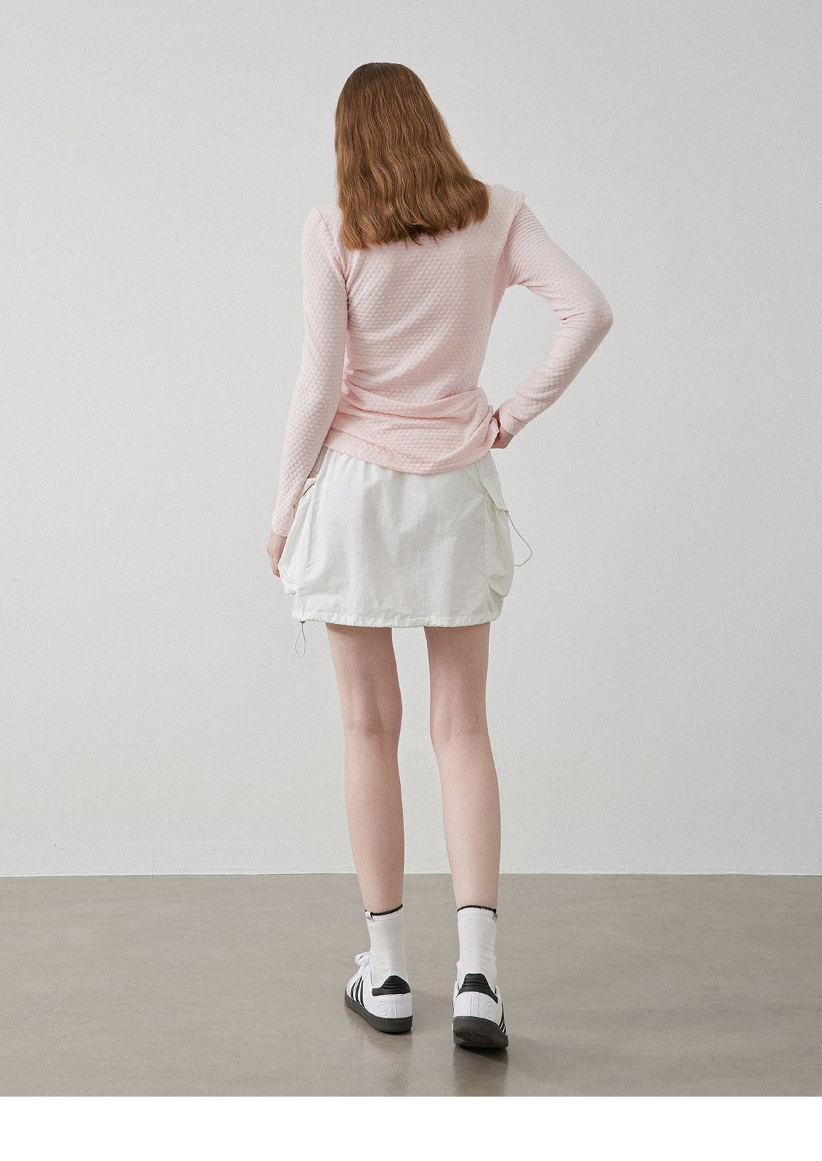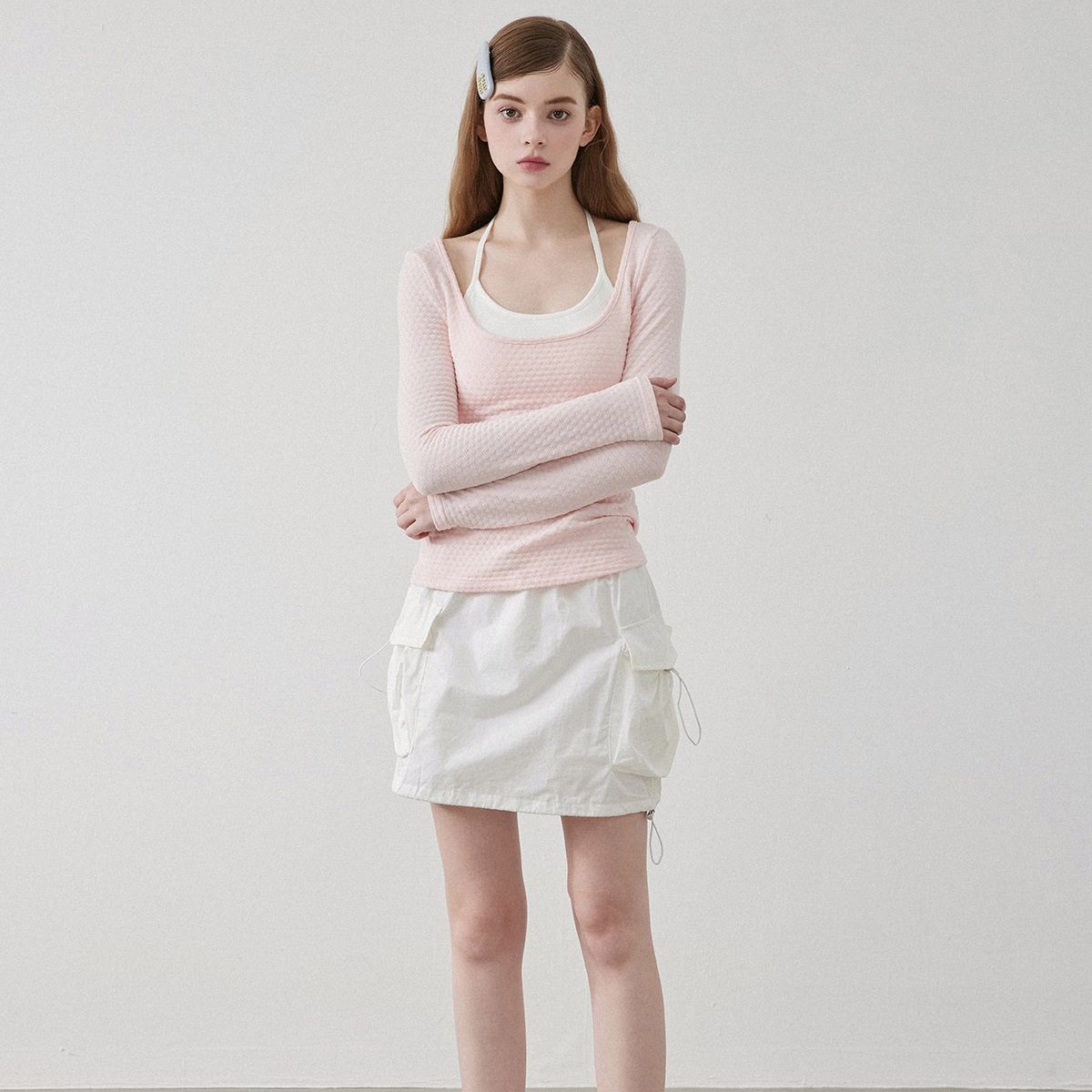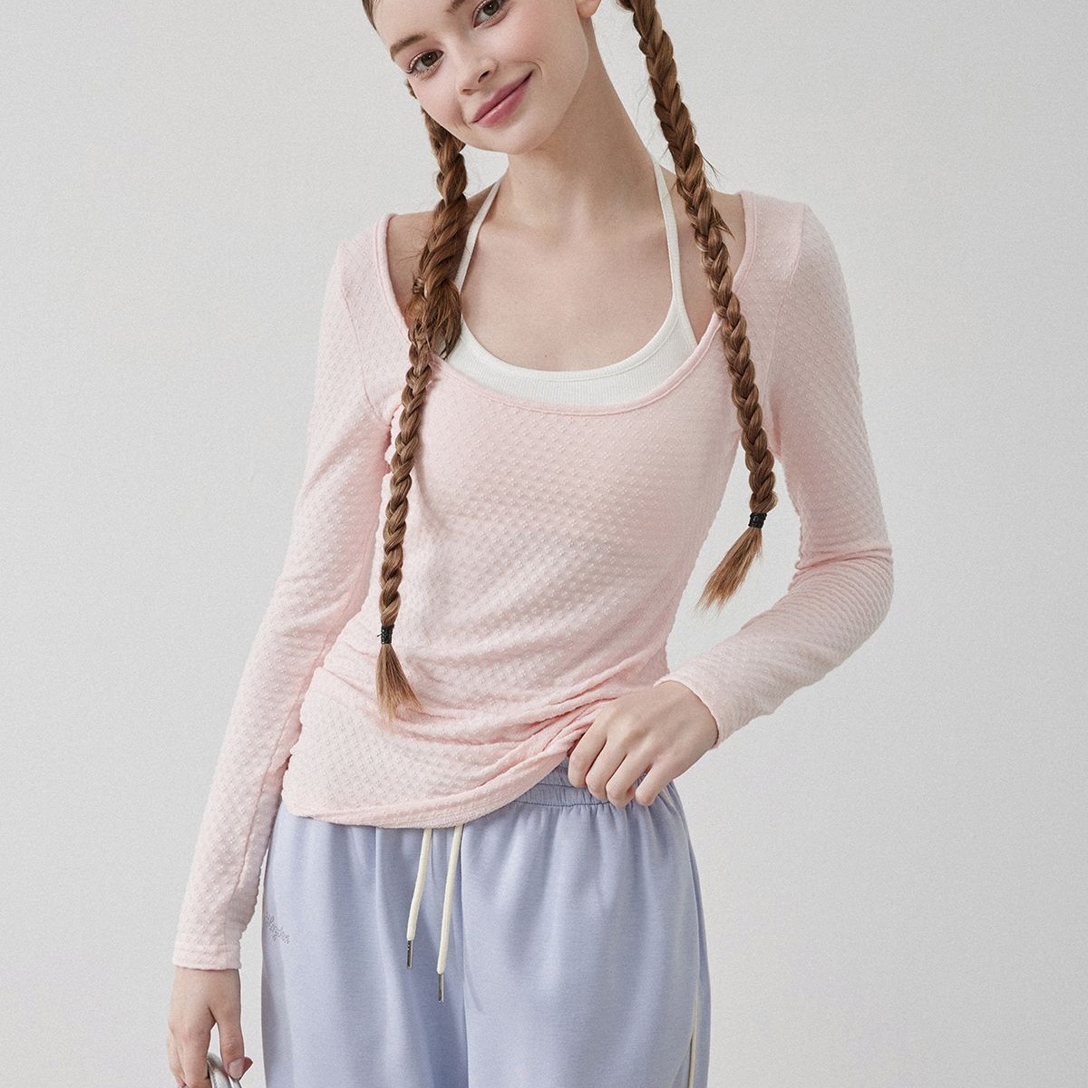 FA44046# 温柔粉色U领花纹长袖t恤修身甜辣上衣 服裝批發女裝批發服飾貨源