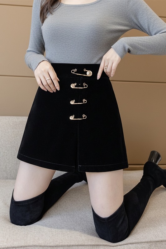 FA44202# 秋冬时尚小香风时尚A字外穿靴裤高腰显瘦减龄金丝绒裙裤短裤 服裝批發女裝批發服飾貨源