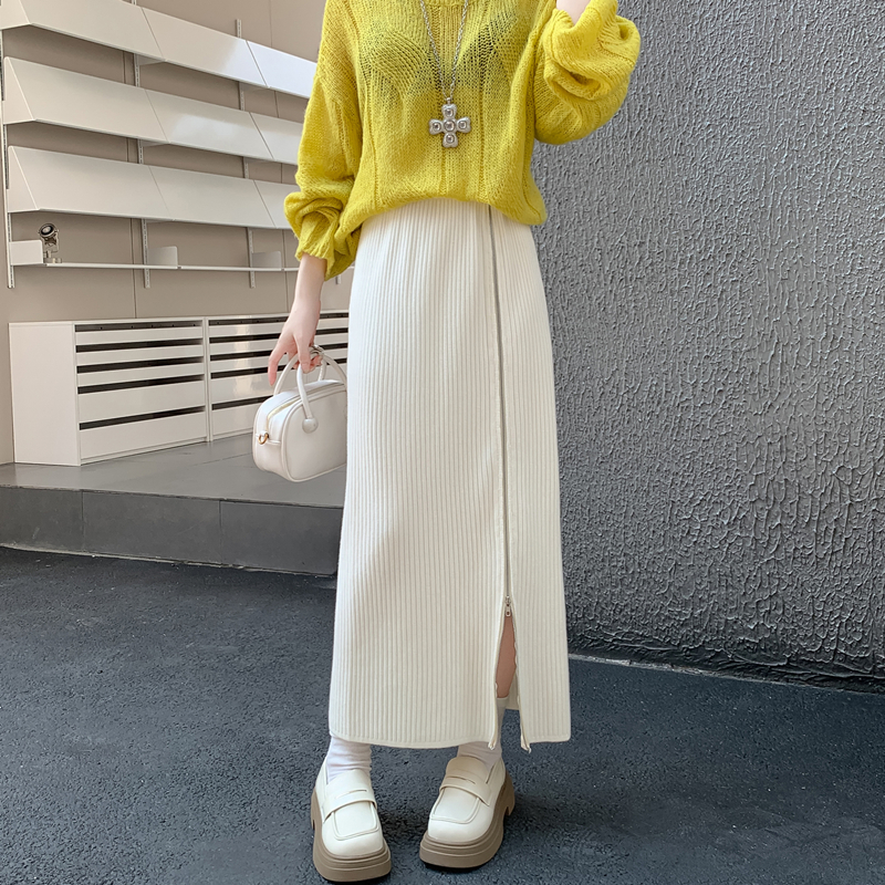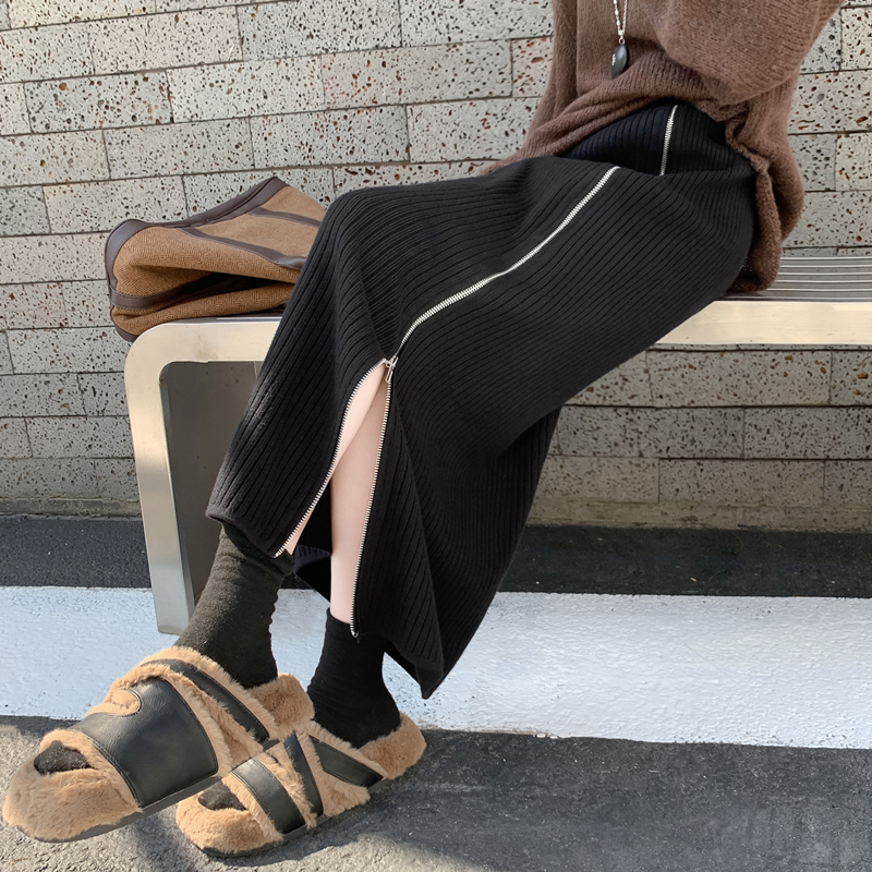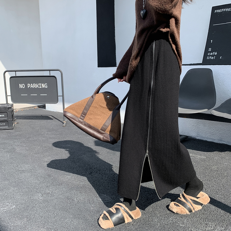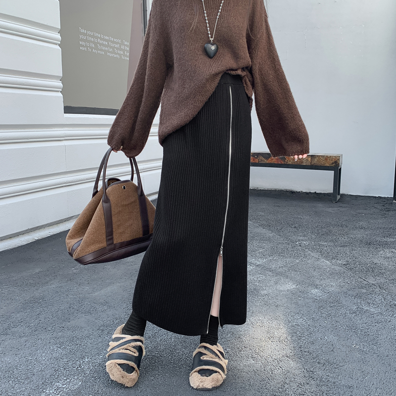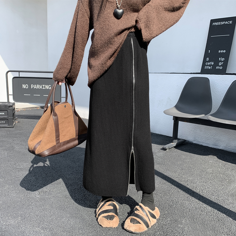 FA44223# 秋冬针织拉链长款韩版高腰a字毛线中长款修身包臀直筒裙 服裝批發女裝批發服飾貨源