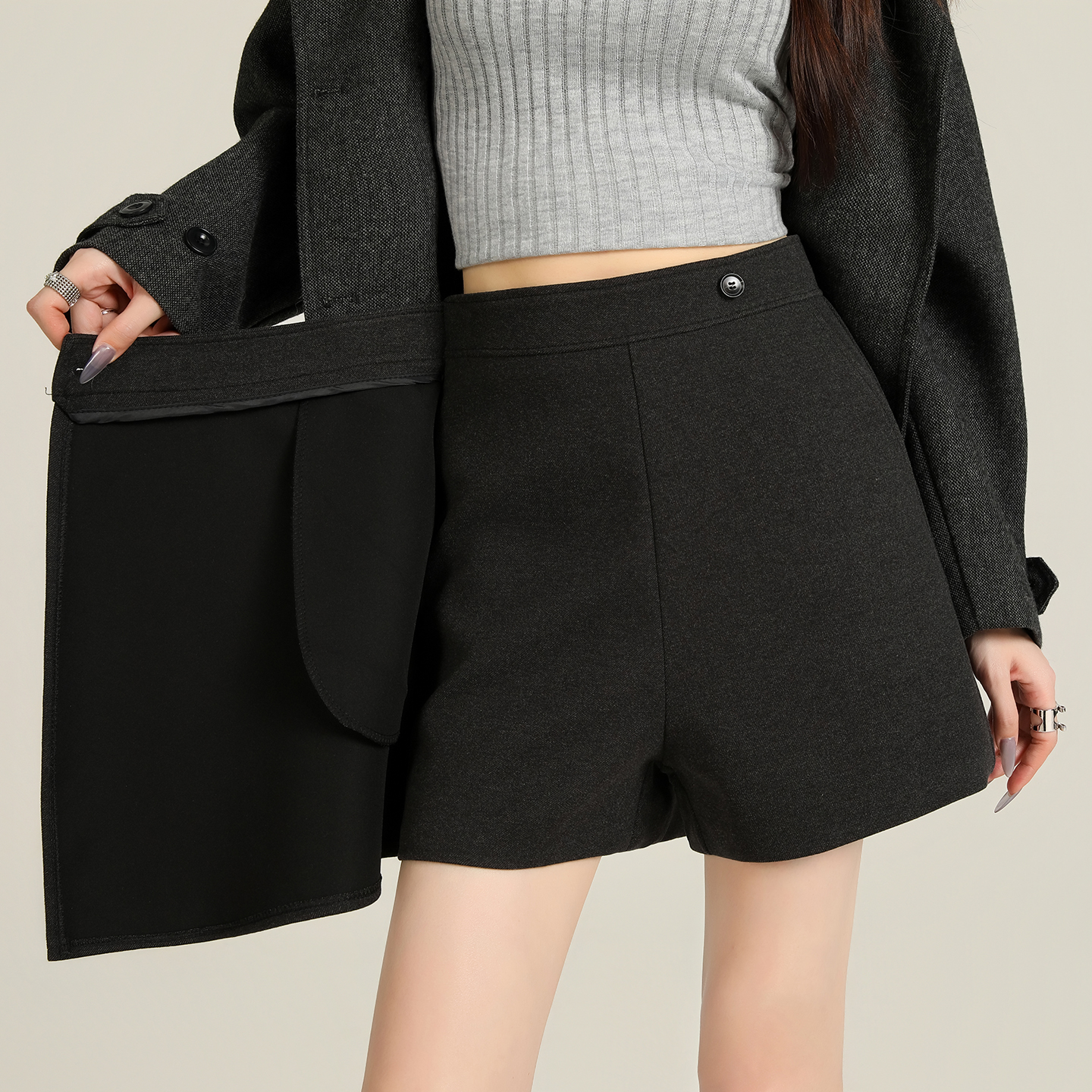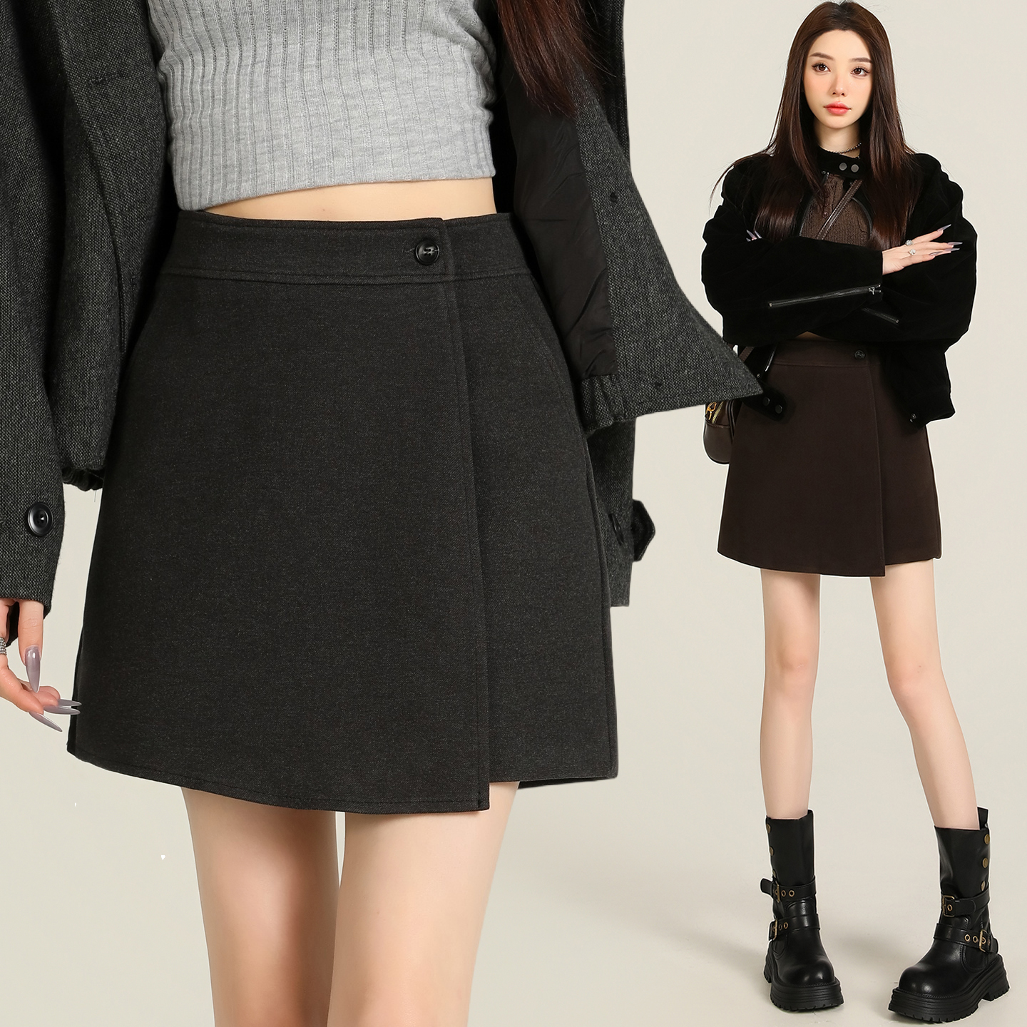 FA44634# 秋冬韩版高腰百搭显瘦不规则一粒扣包臀毛呢口袋半身a字短裙 服裝批發女裝批發服飾貨源