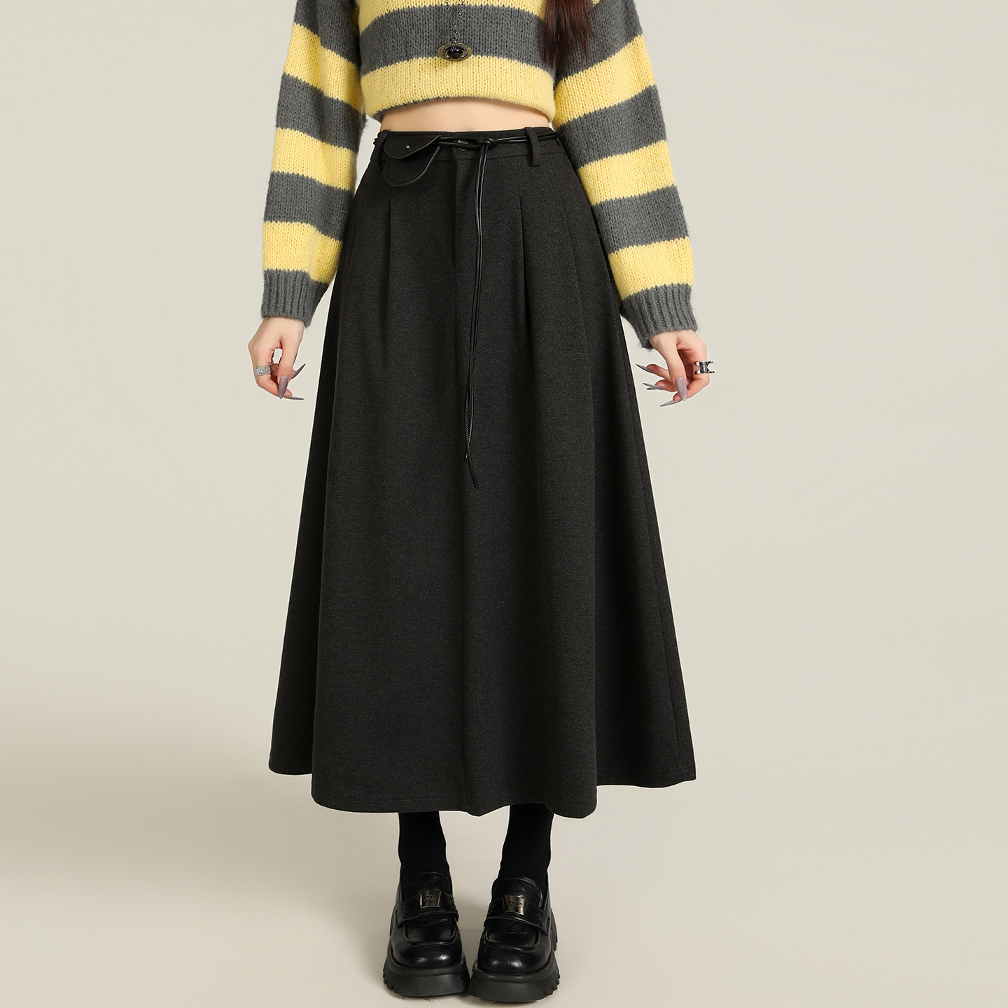 FA44636# 秋冬毛呢高腰显瘦半身裙中长款大摆伞裙松紧腰垂感长裙气质 服裝批發女裝批發服飾貨源