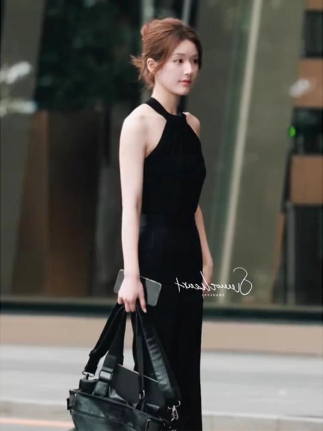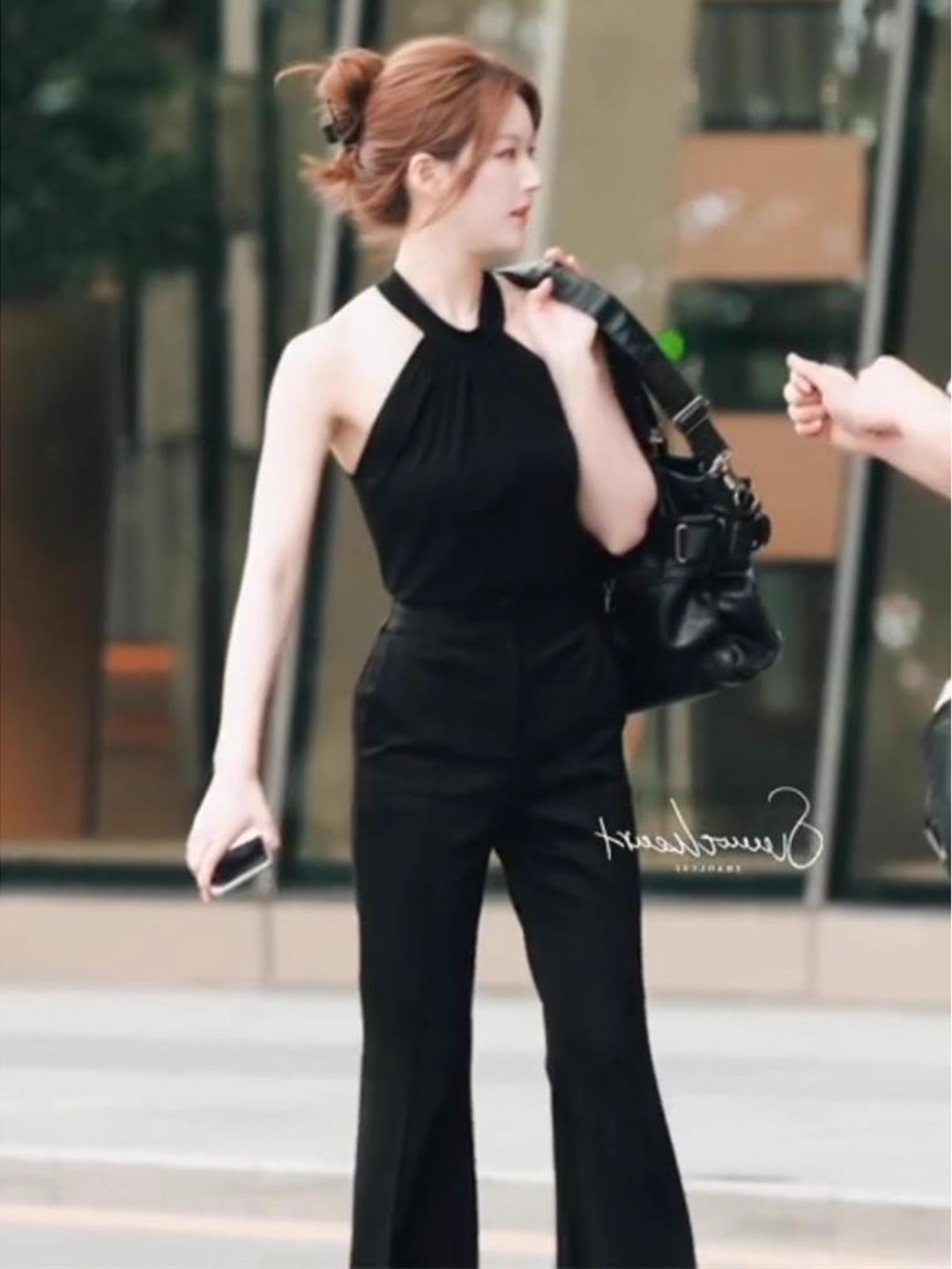 LN76323# 许我耀眼赵露思许妍同款黑色挂脖吊带背心休闲裤套装女新款秋 服裝批發女裝批發服飾貨源