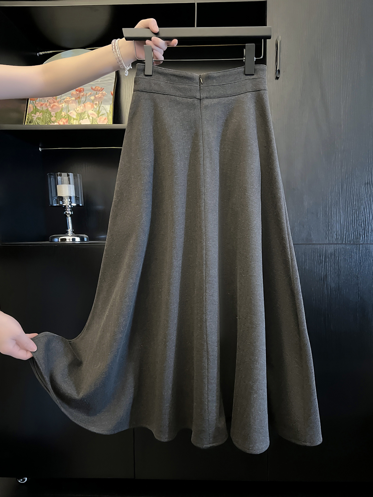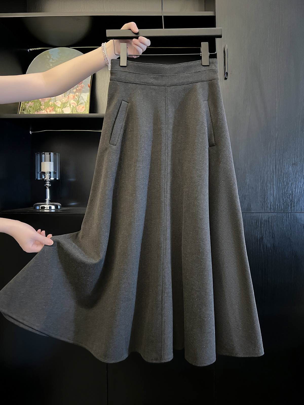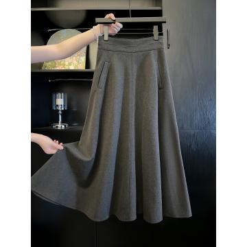 FA44900# 五线打边毛呢半身裙秋冬伞裙赫本大摆裙子 服裝批發女裝批發服飾貨源