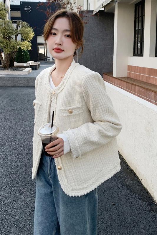 FA44905# 法式白色小香风开衫外套女春秋薄款高级感温柔短款小个子外穿上衣 服裝批發女裝批發服飾貨源