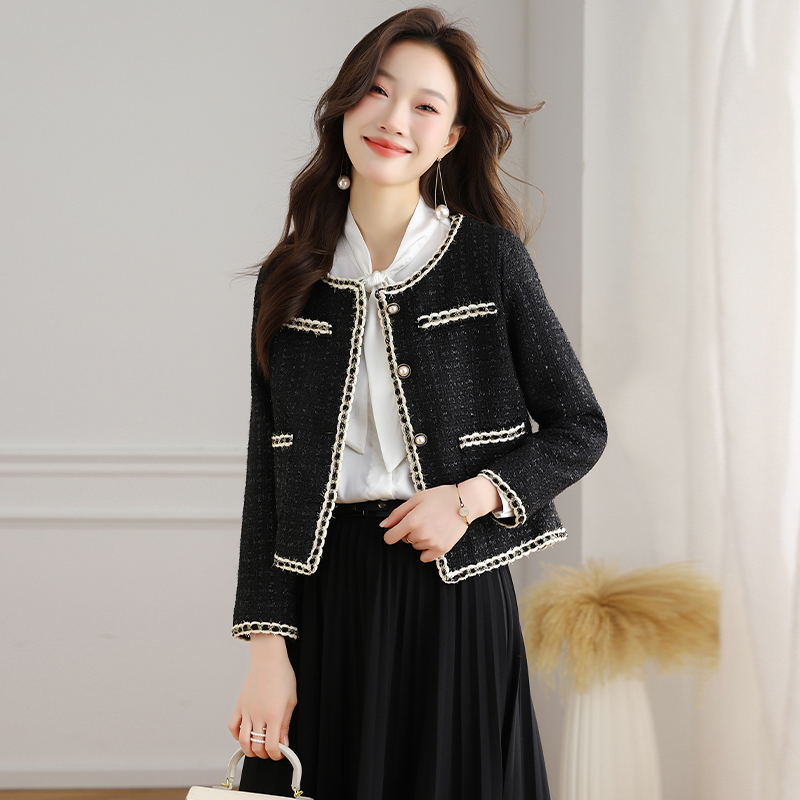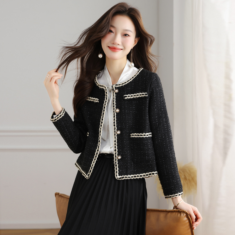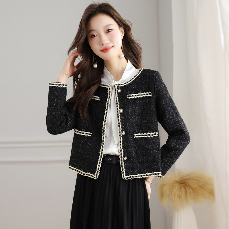 FA44913# 法式短款小香风外套女士春秋气质高级感黑色通勤显瘦上衣 服裝批發女裝批發服飾貨源