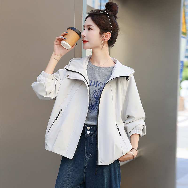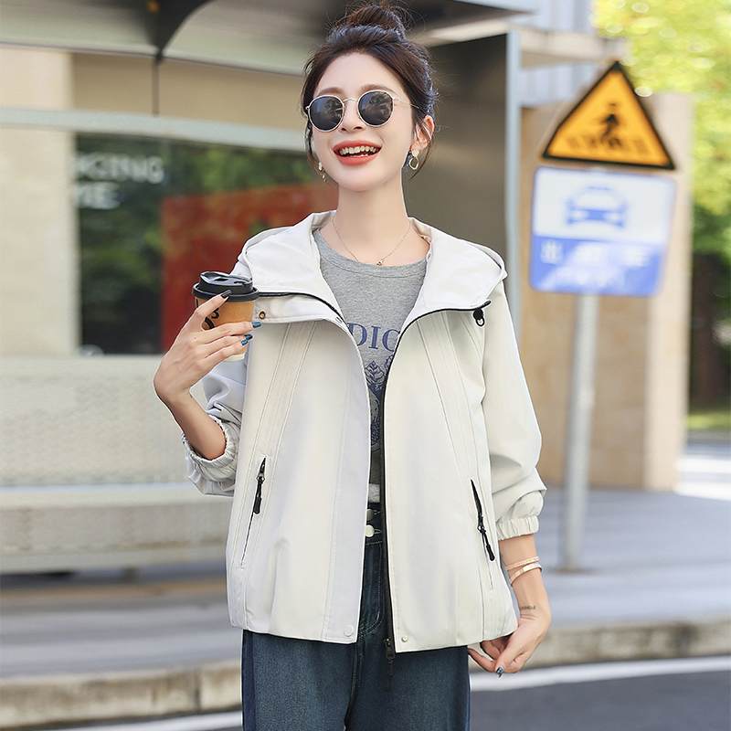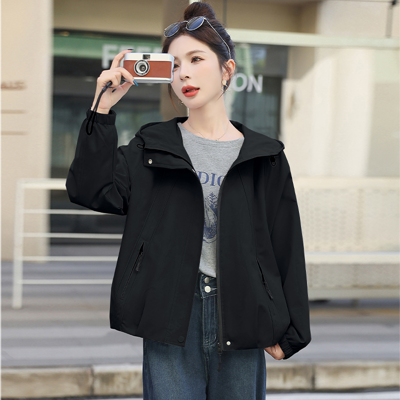 FA44941# 冲锋衣女款春秋新款宽松休闲百搭连帽夹克外套 服裝批發女裝批發服飾貨源