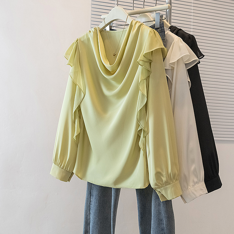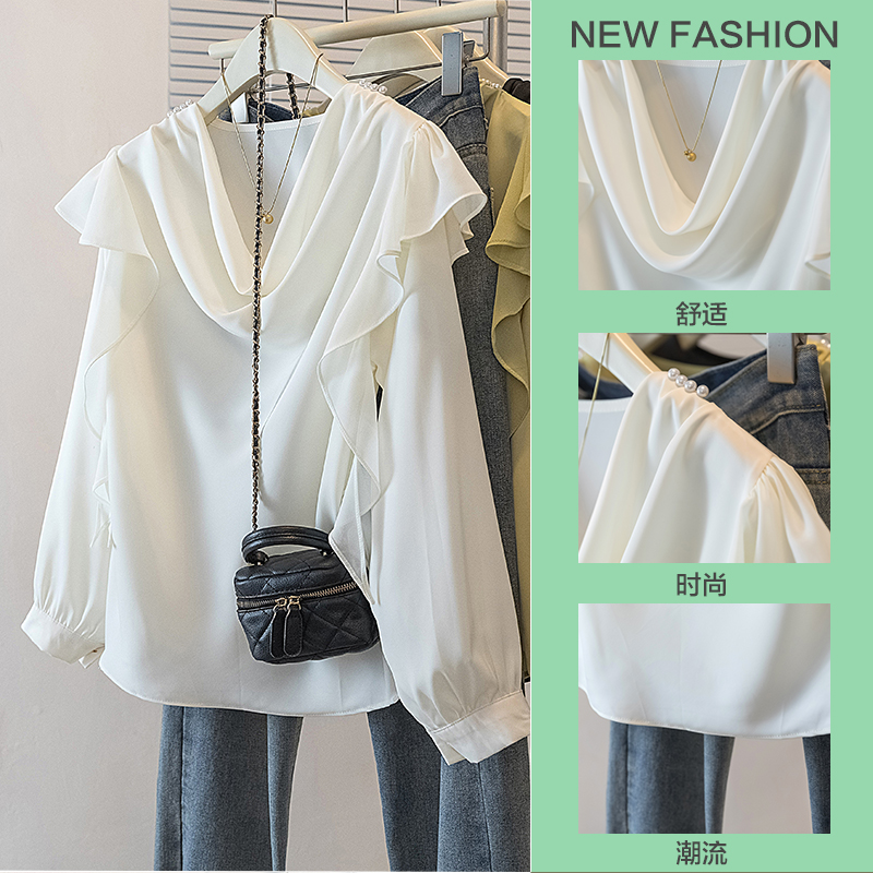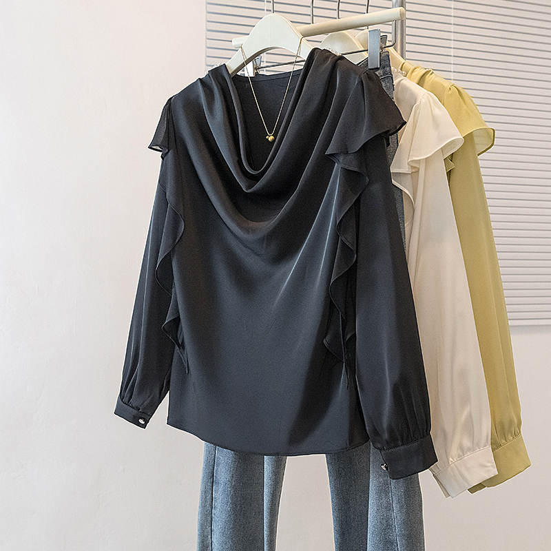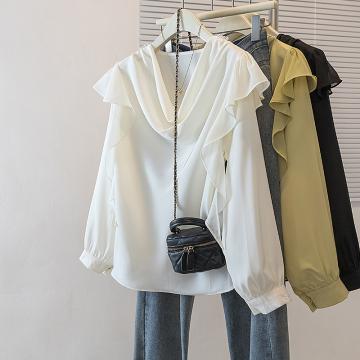 FA45168# 大码女装新款韩系韩版甜美宽松荷叶边娃娃衫设计感衬衫上衣 服裝批發女裝批發服飾貨源