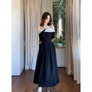 FA45169# 木子李的李设计感交叉领露肩长袖针织衫撞色修身上衣高腰半身裙秋 服裝批發女裝批發服飾貨源