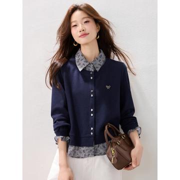 FA45381# 冬装新款时尚简约印花假两件拼接卫衣复古欧货上衣 服裝批發女裝批發服飾貨源