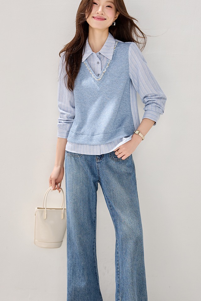 FA45383# 巴恩风高级感气质针织马甲拼接假两件衬衫女冬季新款 服裝批發女裝批發服飾貨源