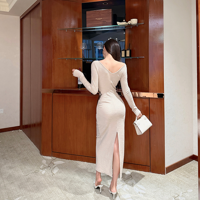 夜半蔷薇新中式绣花蕾丝肌理针织连衣裙气质显瘦一字肩长裙 服裝批發女裝批發服飾貨源
