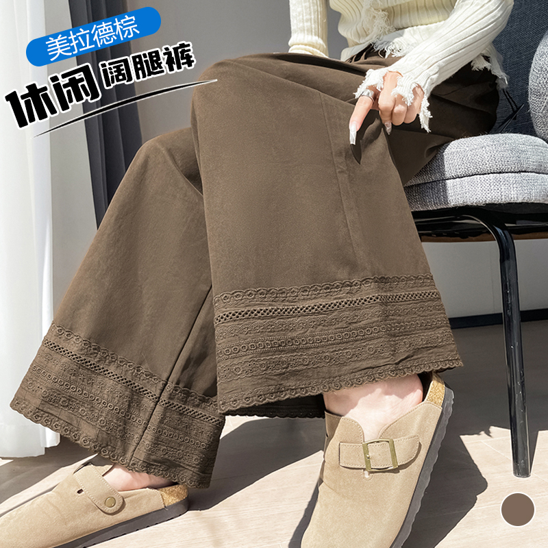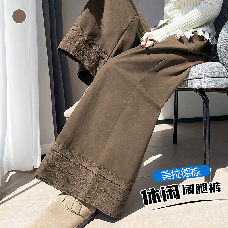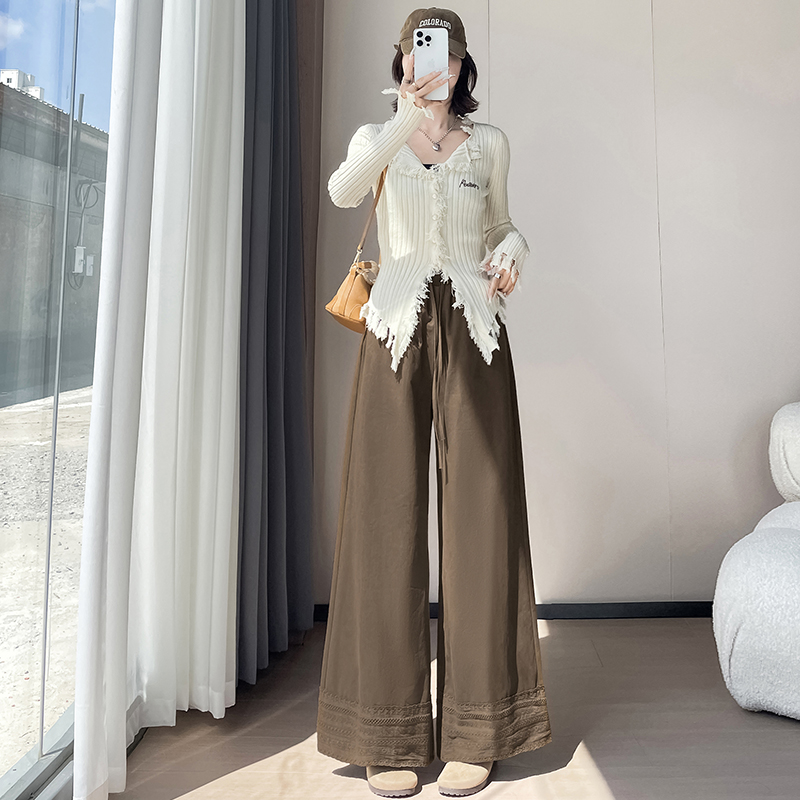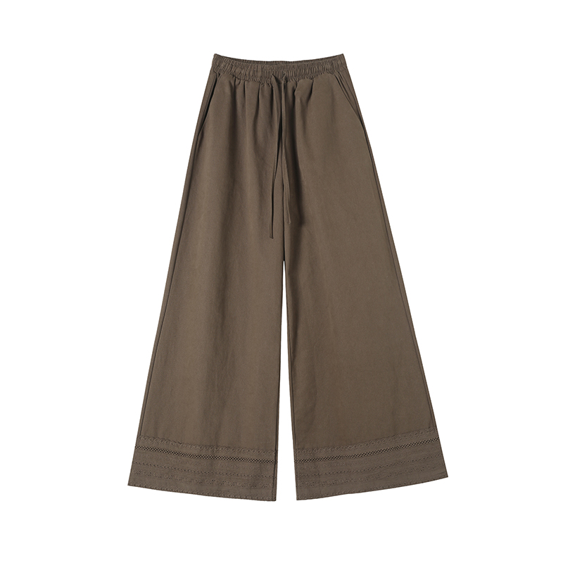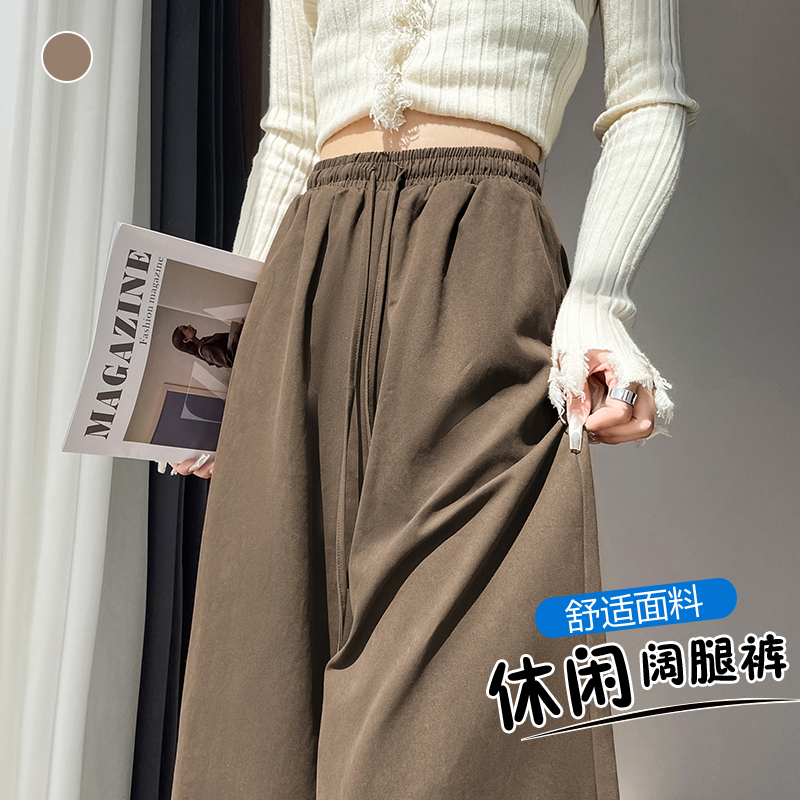 FA45220# 韩系女装秋季抽绳休闲裤咖色阔腿设计感宽松显瘦休闲长裤 服裝批發女裝批發服飾貨源