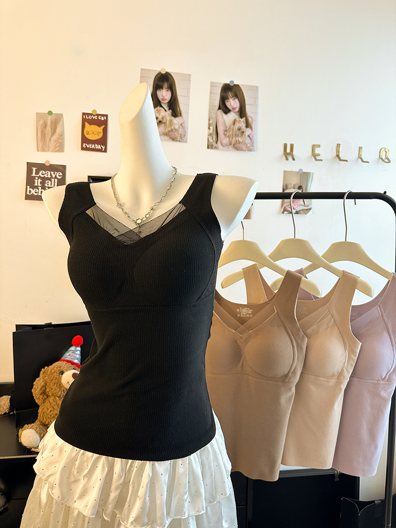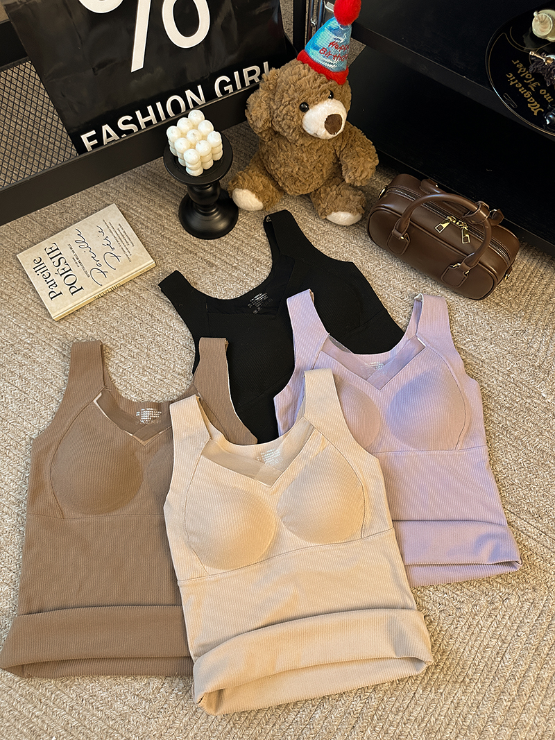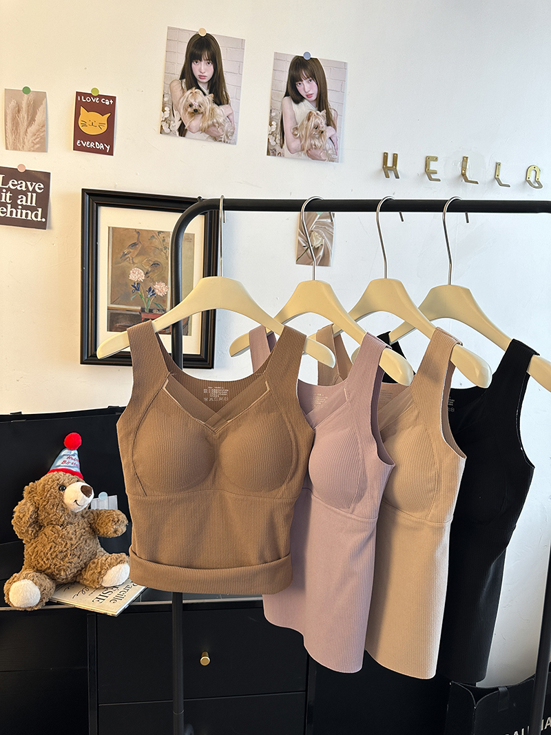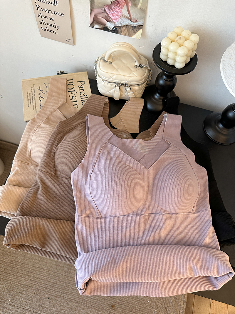 FA45234# 大码保暖背心塑形防外扩提拉带垫内衣内搭V领磨绒暖肤打底衫 服裝批發女裝批發服飾貨源