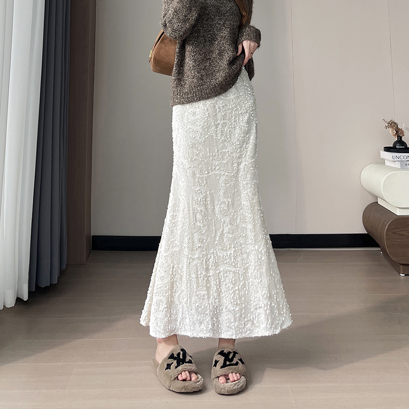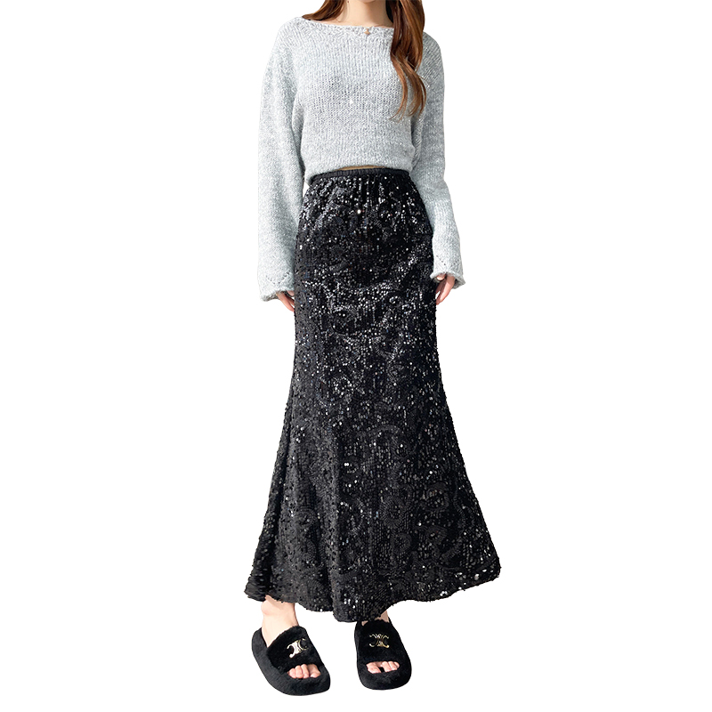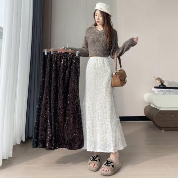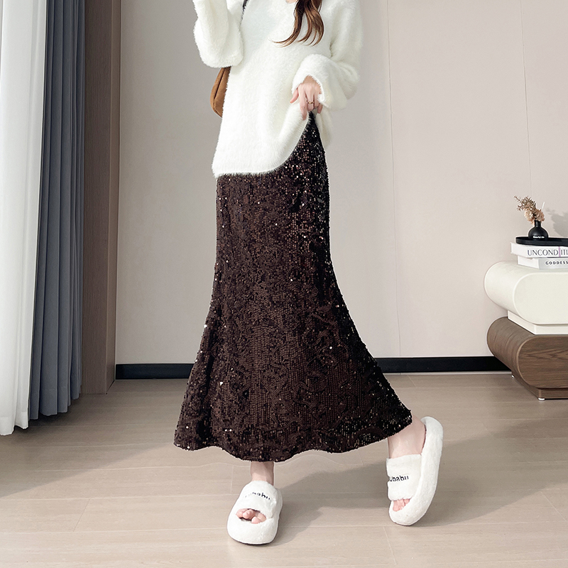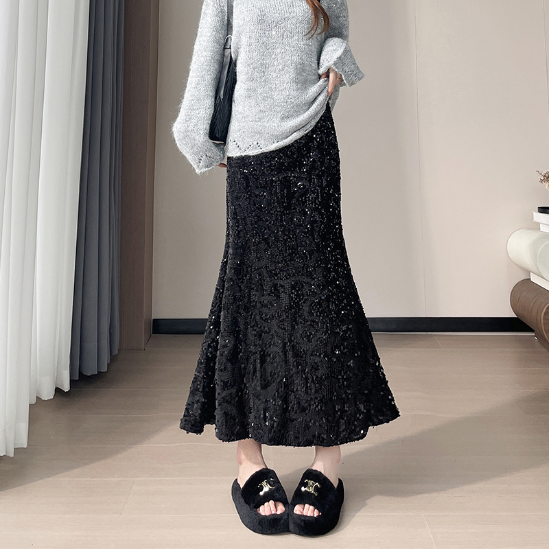 FA45296# 视频亮闪闪的丝绒亮片半身裙女高腰A字鱼尾裙包臀裙中长裙子 服裝批發女裝批發服飾貨源