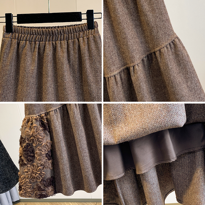 FA45408# 大码女装秋冬新款胖mm韩系复古立体花朵设计感高腰显瘦半身裙 服裝批發女裝批發服飾貨源