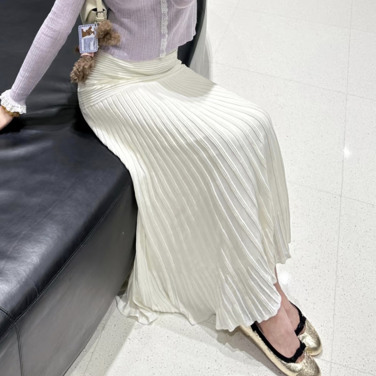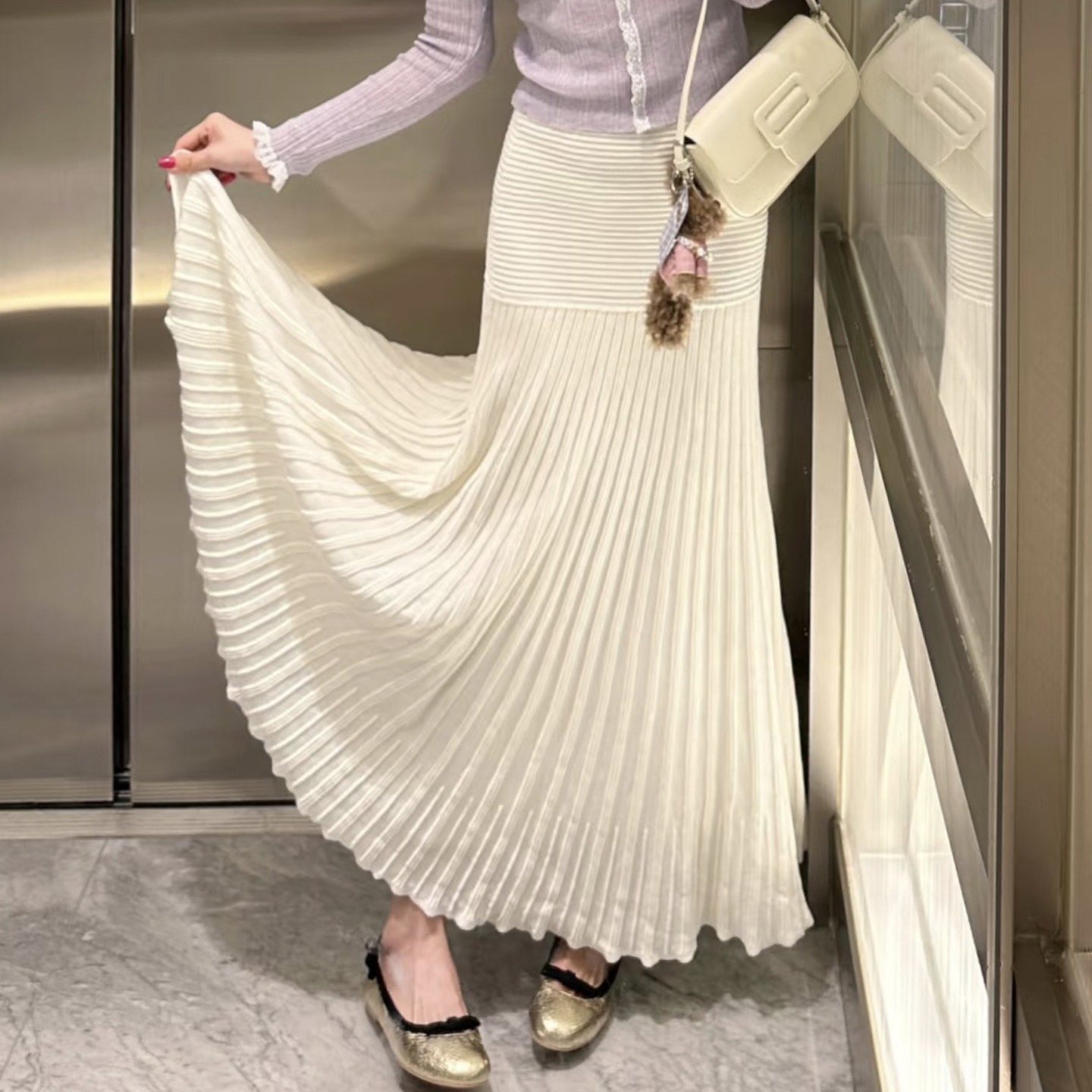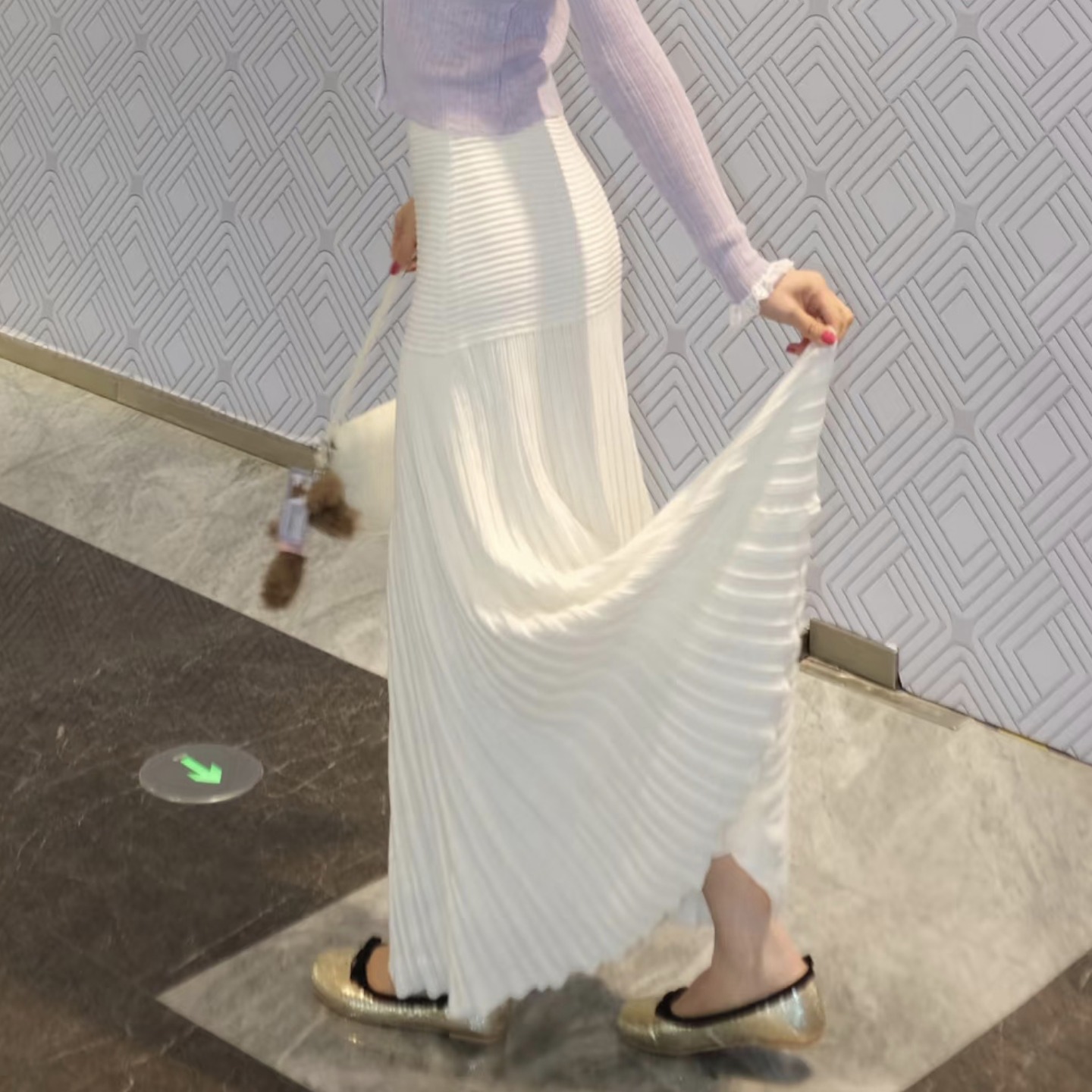 FA45958# 仙气飘飘白色针织a字半身裙女夏新款高腰显瘦垂坠感百褶长裙 服裝批發女裝批發服飾貨源