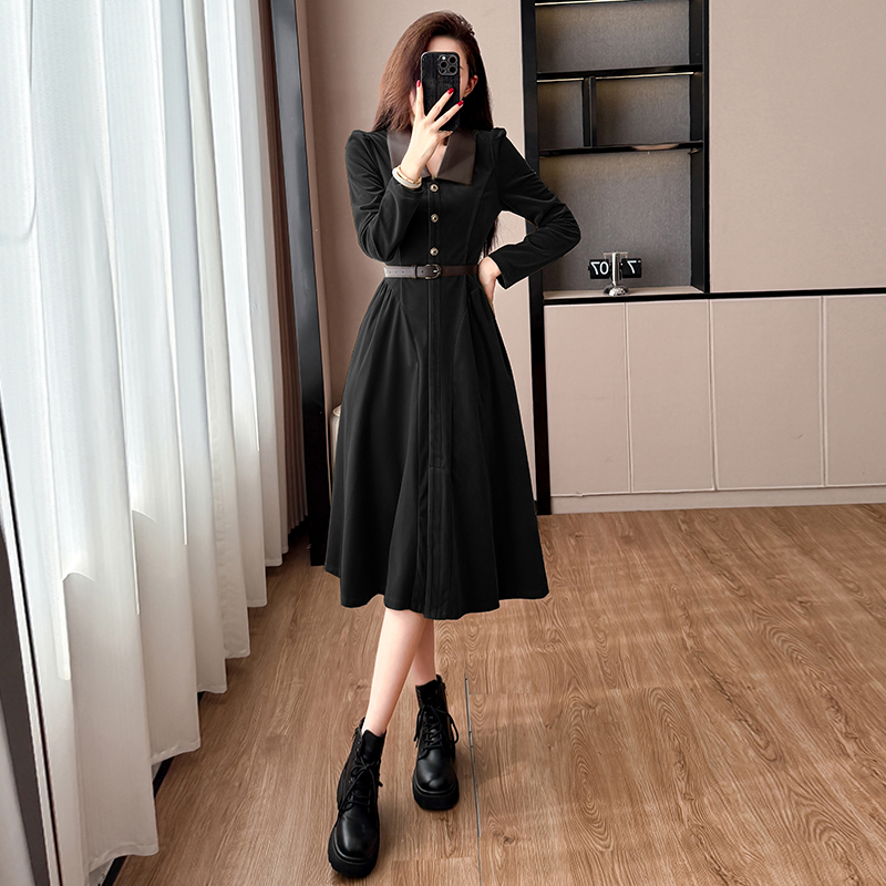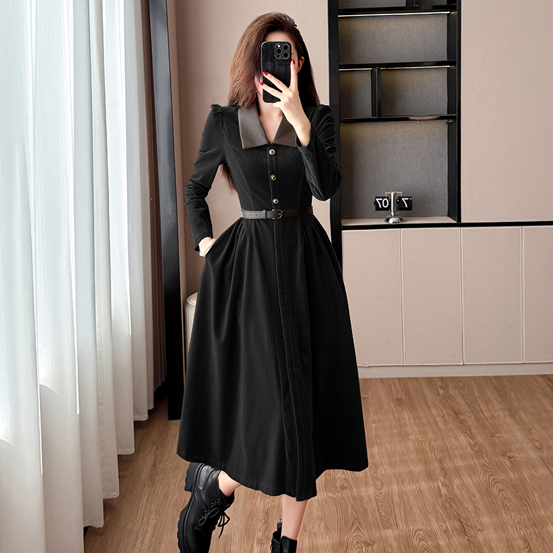 FA45960# 秋冬新款法式绝美气质复古翻领时尚气质显瘦设计师连衣裙 服裝批發女裝批發服飾貨源