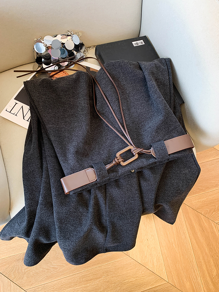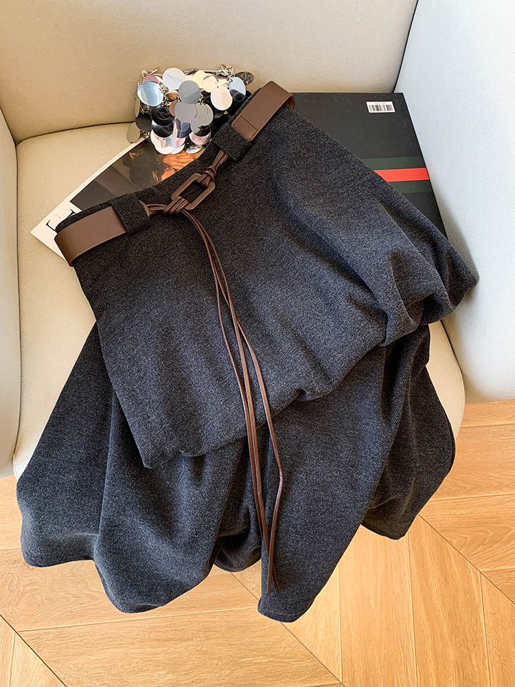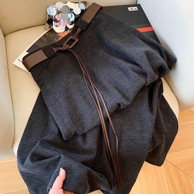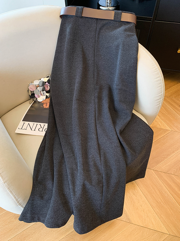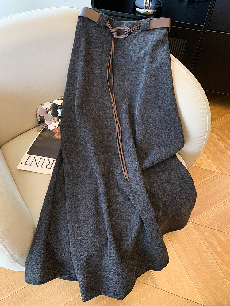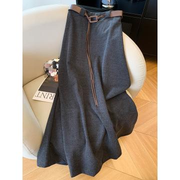 FA47669# 高级感气质灰色半身裙配腰带女秋季时尚高腰显瘦垂感a字长裙 服裝批發女裝批發服飾貨源