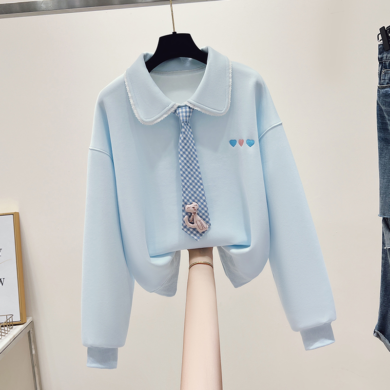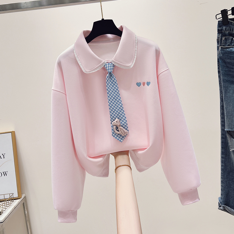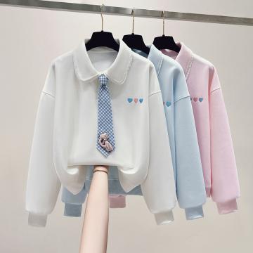 FA48871# 秋季新款女装卫衣长袖POLO领甜美减龄学院风外套上衣 服裝批發女裝批發服飾貨源