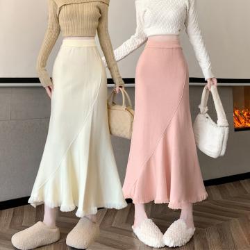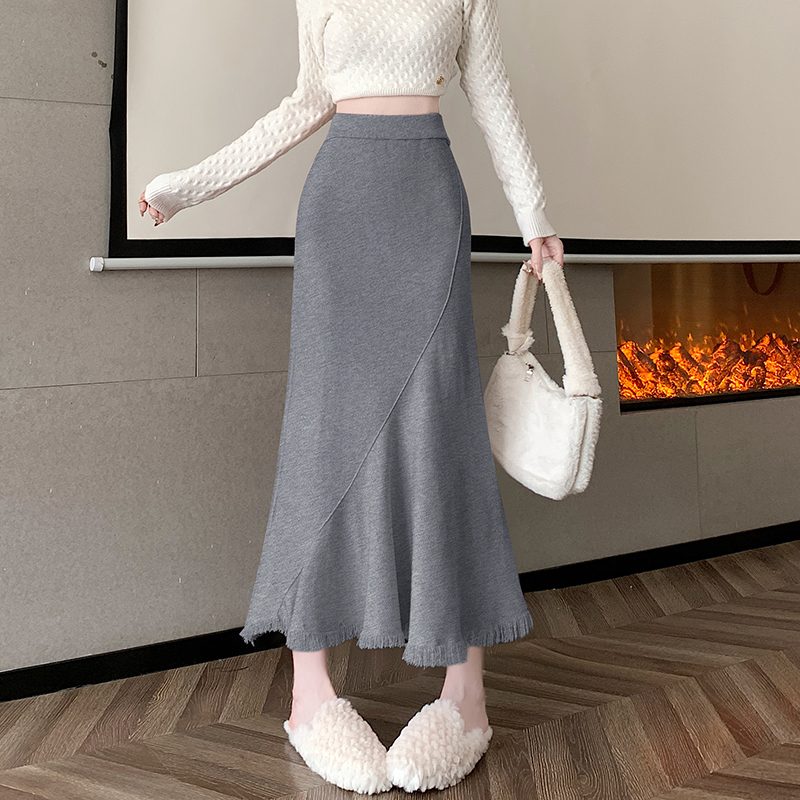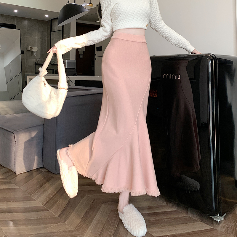 FA48948# 流苏针织半身裙女秋冬韩版高腰鱼尾裙性感a字包臀裙修身长裙 服裝批發女裝批發服飾貨源