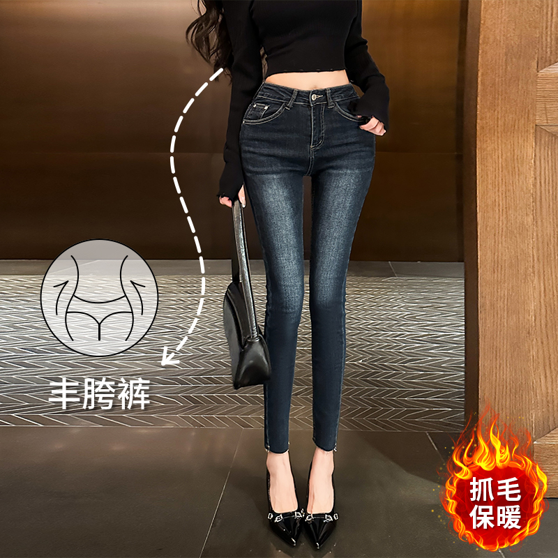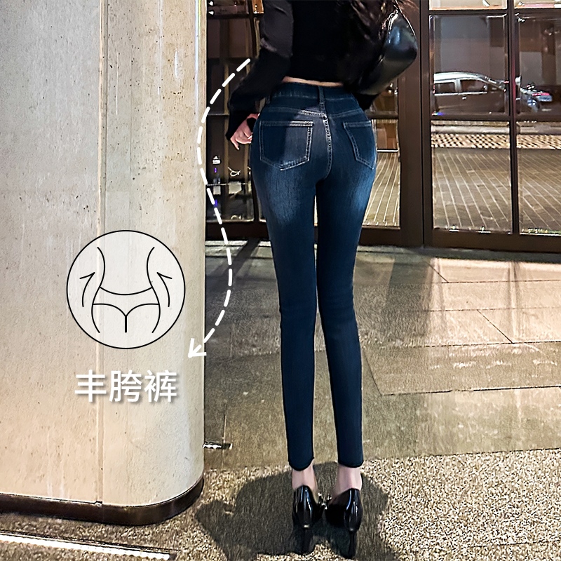 FA48993# 希野/韩版百搭丰胯小脚裤高腰提臀修身显身材弹力牛仔裤女秋 服裝批發女裝批發服飾貨源