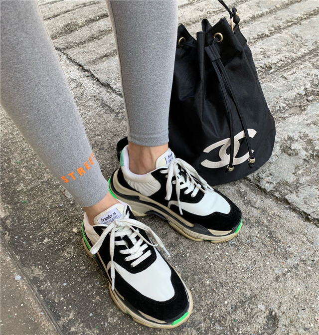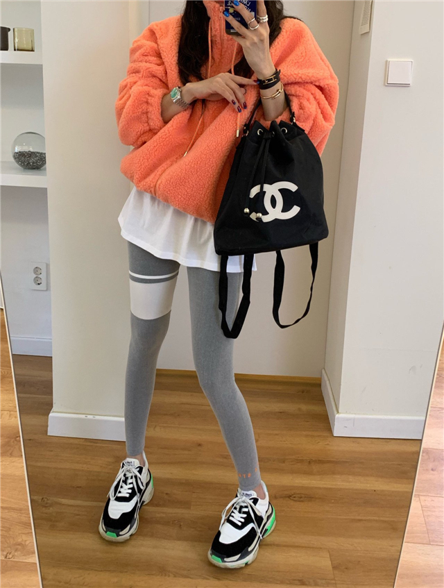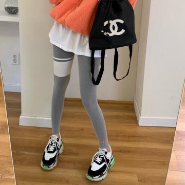 FA49044# 百搭高腰单腿宽条收身显瘦打底裤 服裝批發女裝批發服飾貨源