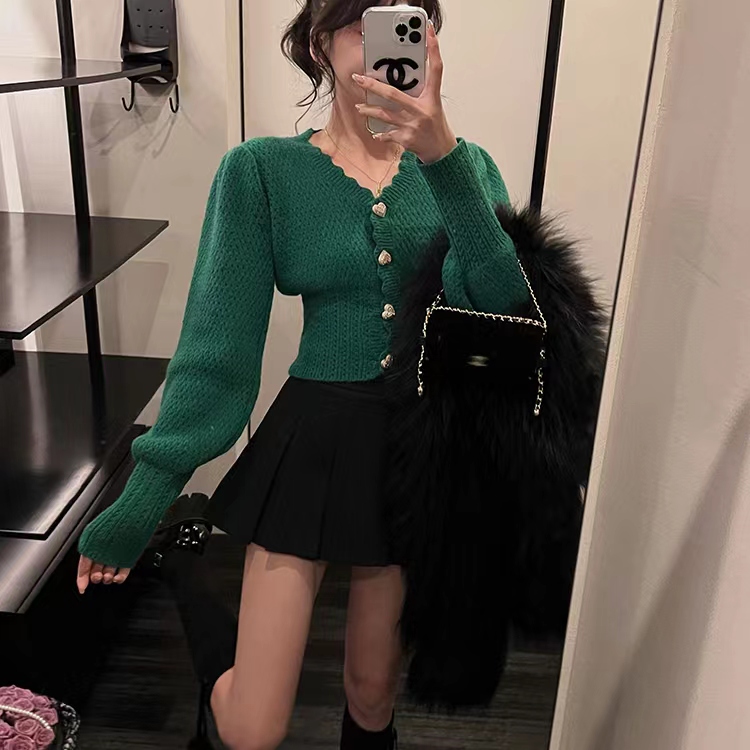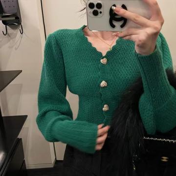 FA49070# 小香风纽扣毛衣女秋冬季慵懒风宽松V领针织开衫外套 服裝批發女裝批發服飾貨源