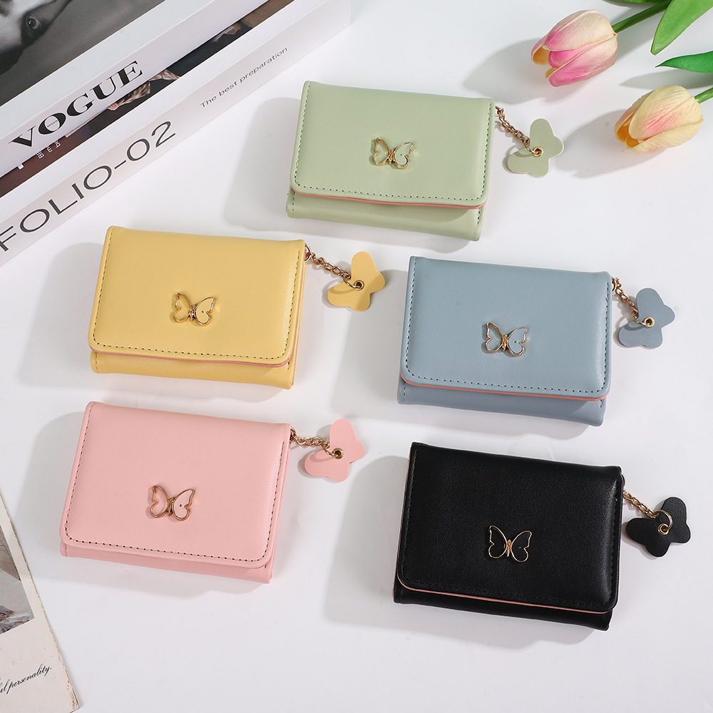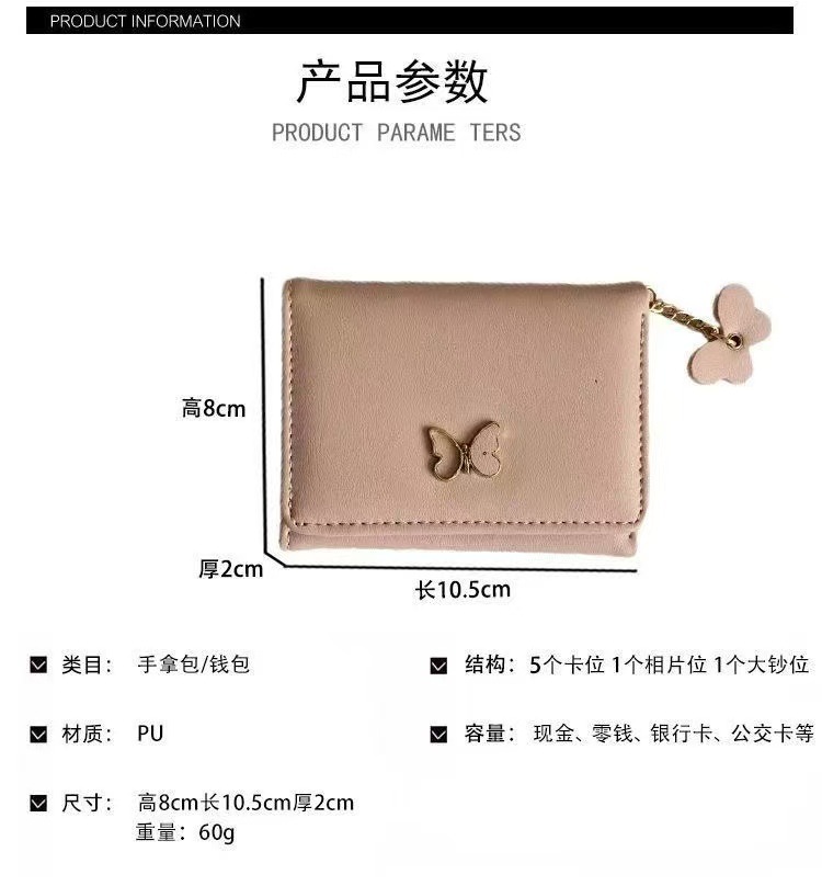 TJ2103# 韩版可爱小钱包蝴蝶挂件短款钱夹卡包一体女学生卡通高颜值零批发