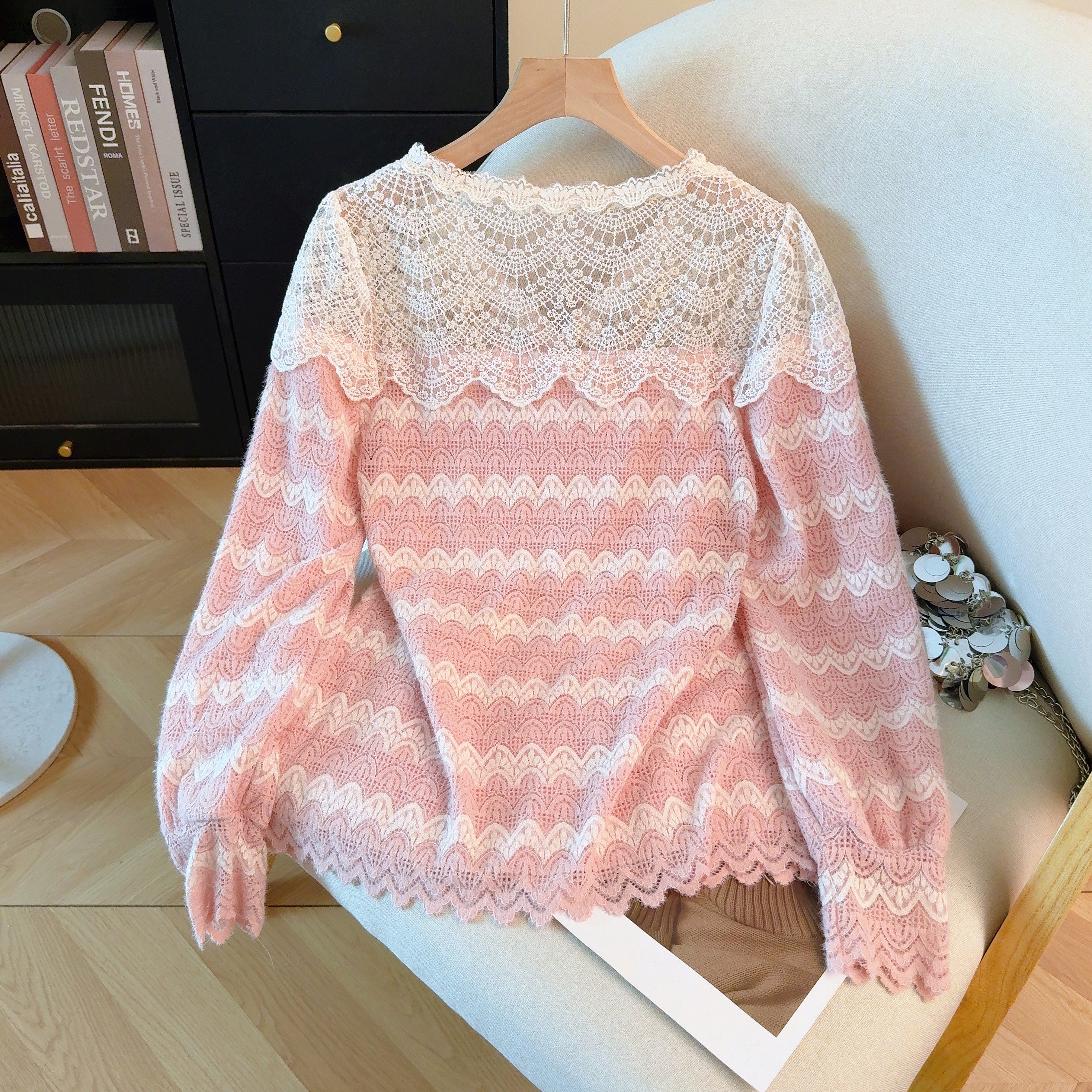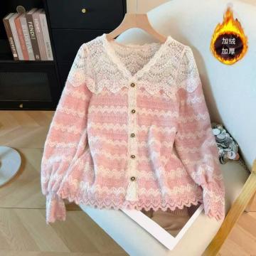 FA49083# v领蕾丝打底衫女秋冬新款女装加绒内搭上衣别致洋气小衫 服裝批發女裝批發服飾貨源